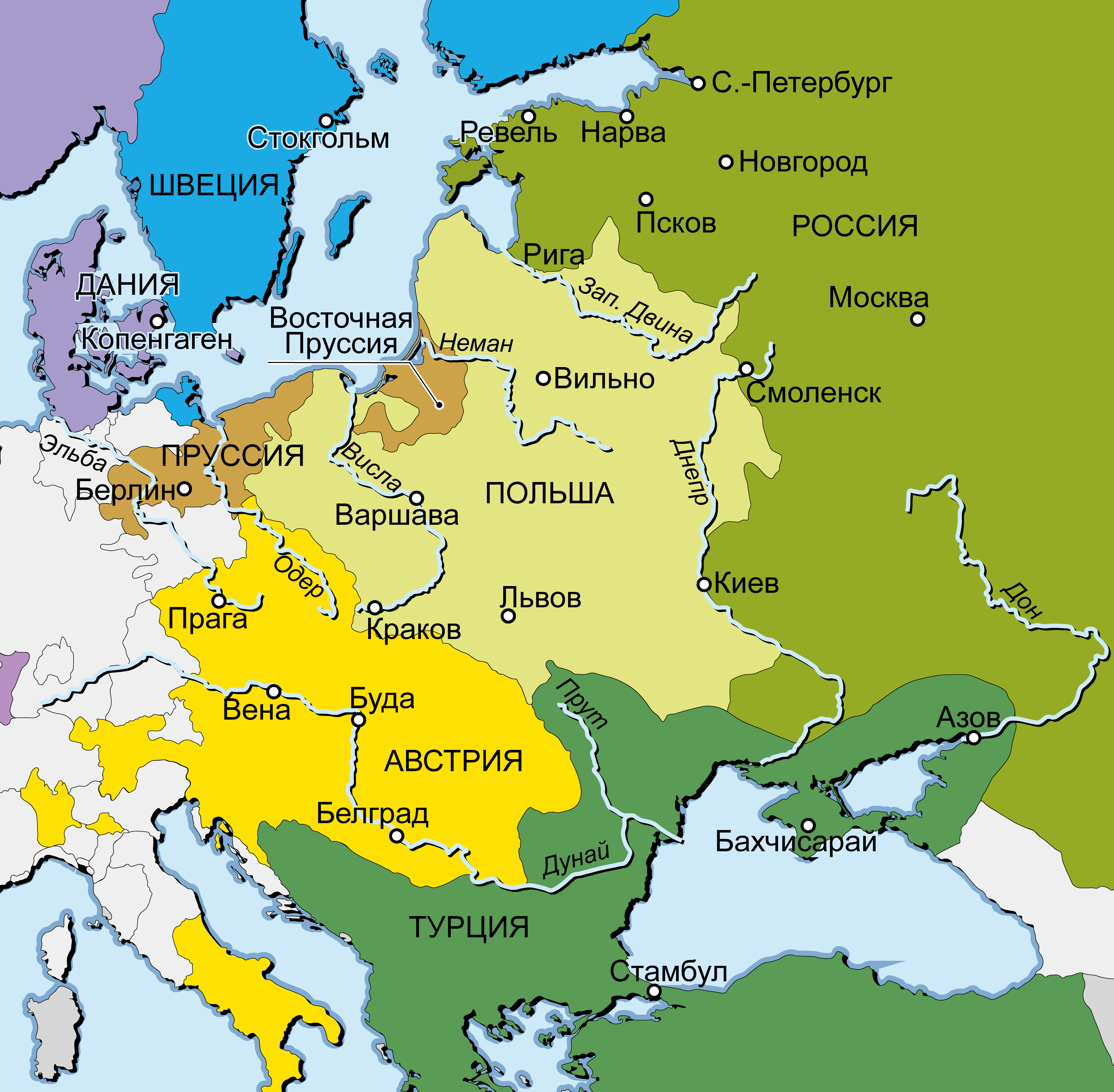 Карта Восточной и Северной Европы в 1721 г.