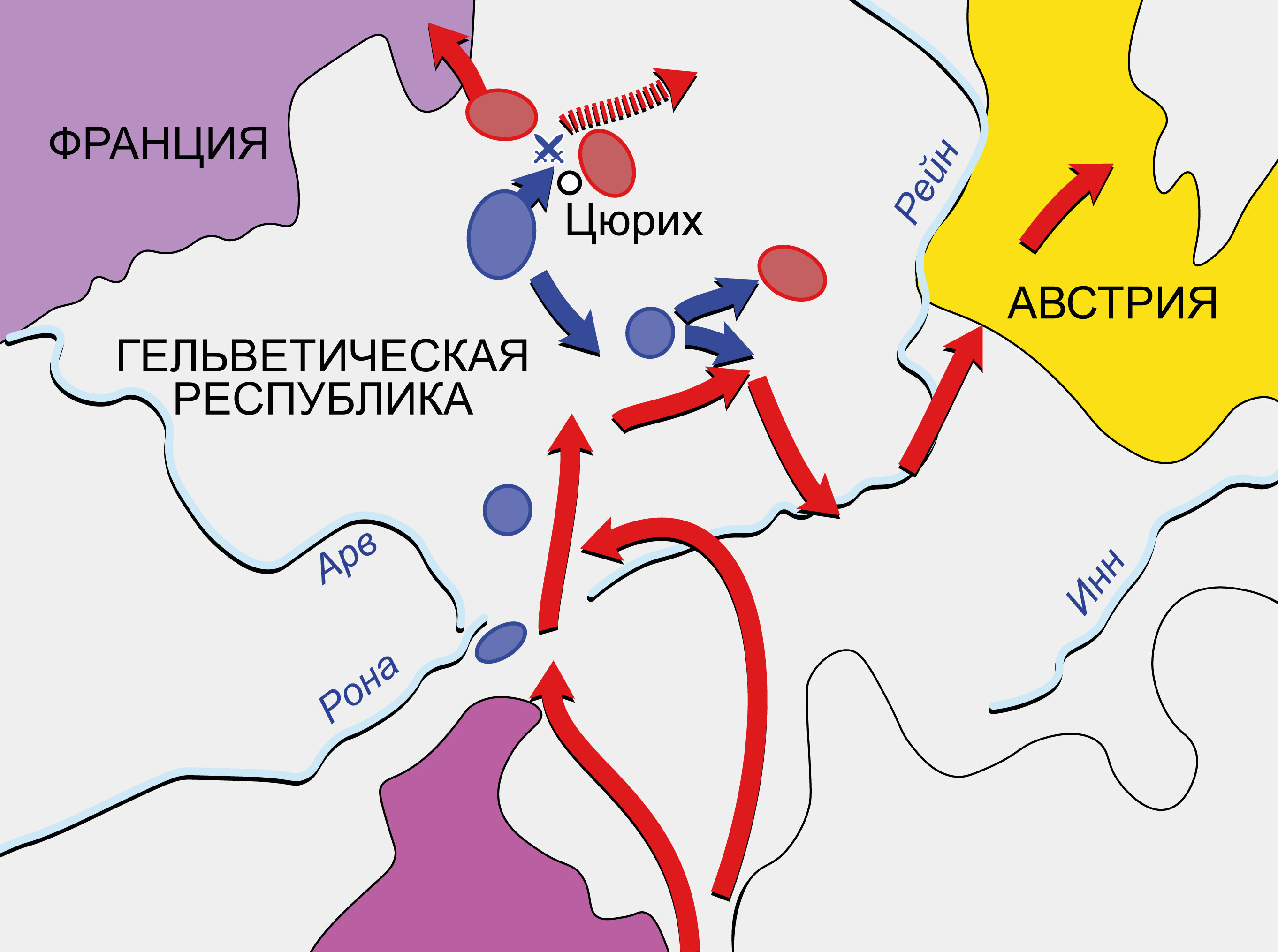 Вторая антифранцузская коалиция 1798–1802 гг. Карта кампании в Швейцарии в 1799 г.