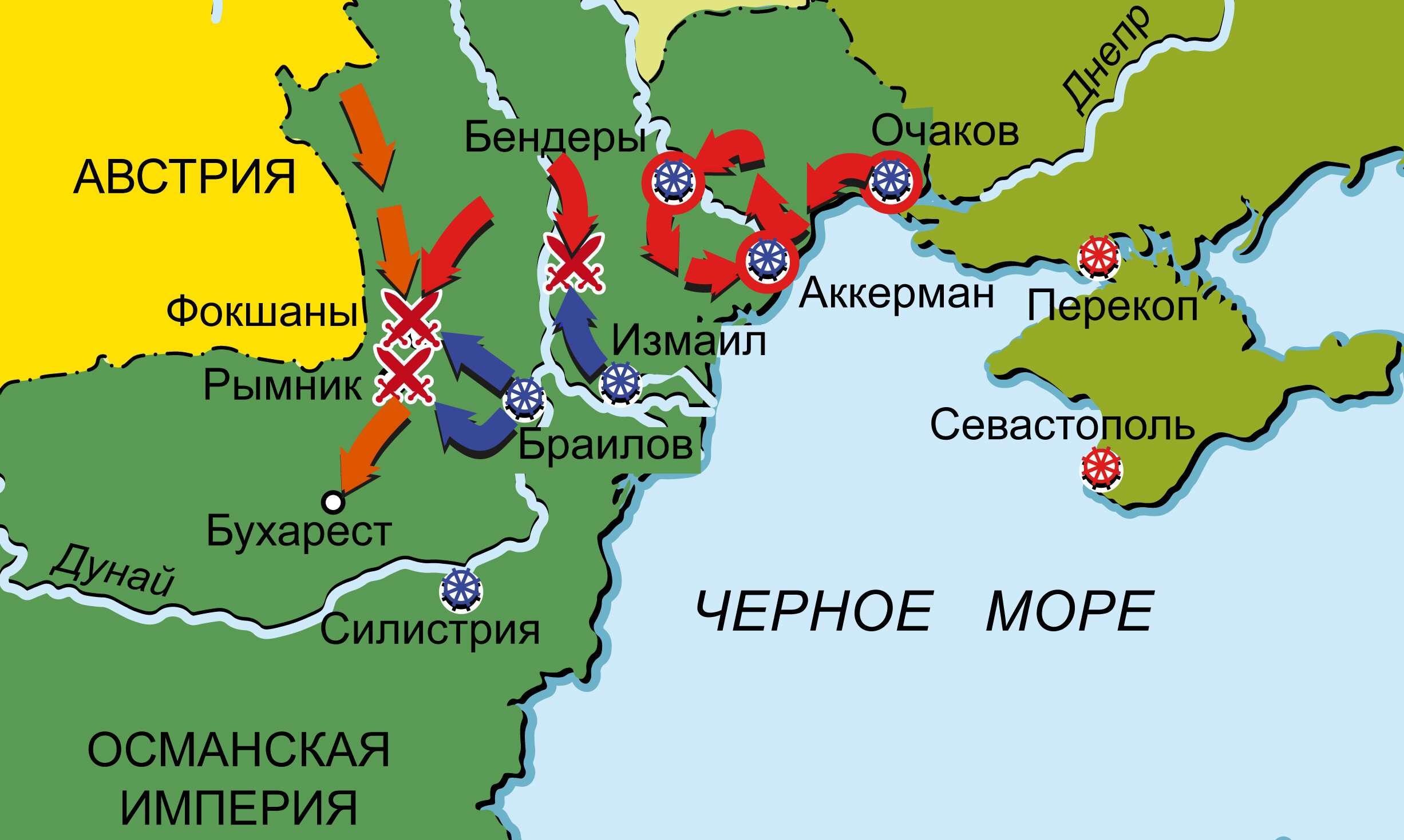 Война России и Австрии против Турции 1787–1791 гг. Карта кампании 1789 г. на Дунае и Черном море
