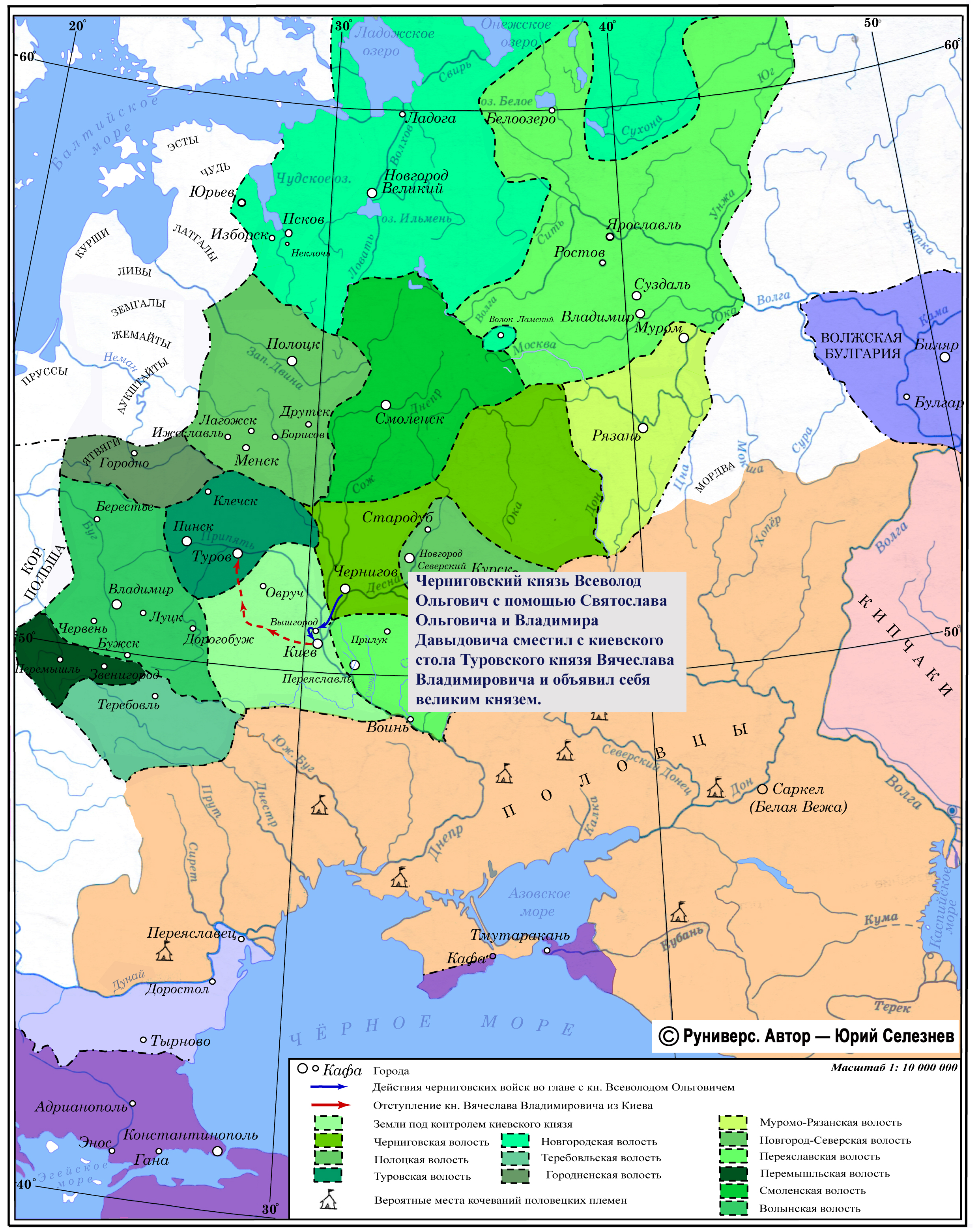 Черниговский князь Всеволод Ольгович с помощью Святослава Ольговича и Владимира Давыдовича сместил с киевского стола Туровского князя Вячеслава Владимировича и объявил себя великим князем.