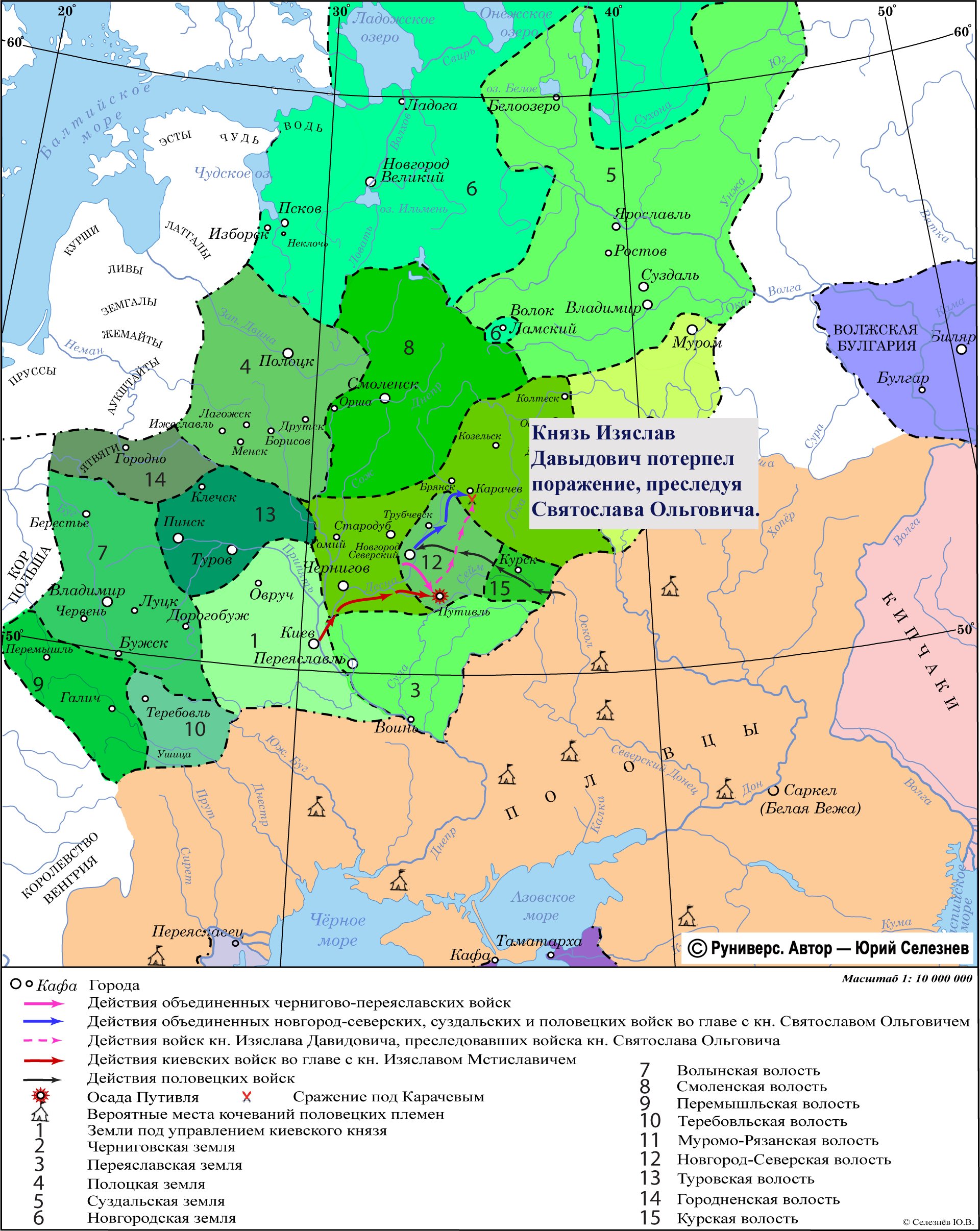 Князь Изяслав Давыдович потерпел поражение, преследуя Святослава Ольговича.