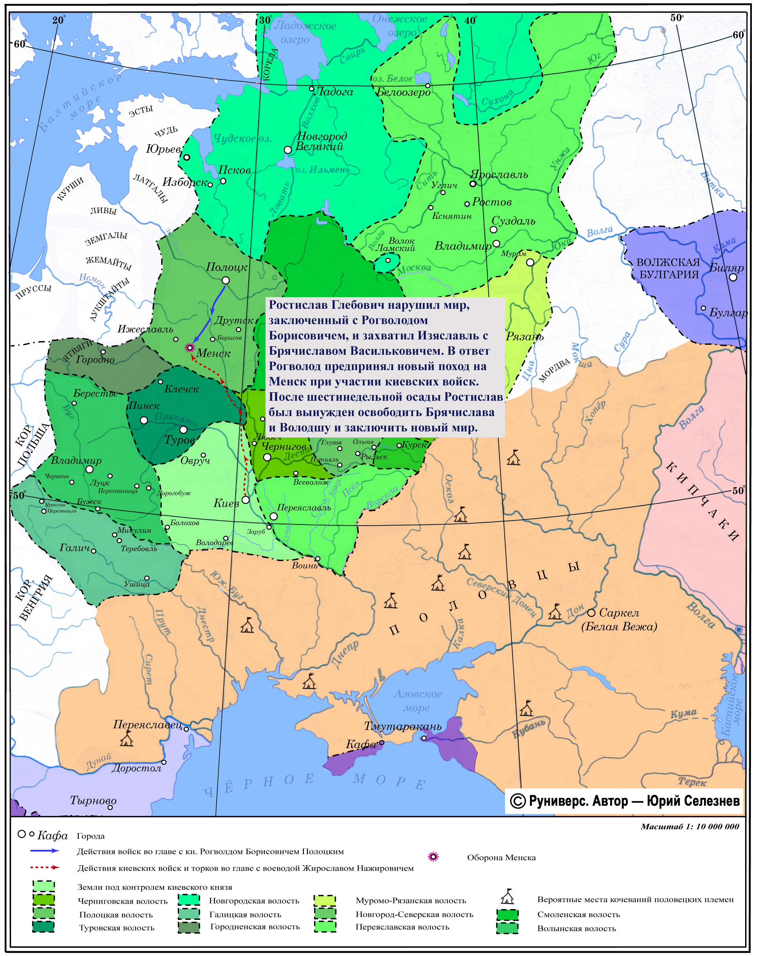 Ростислав Глебович нарушил мир, заключенный с Рогволодом Борисовичем, и захватил Изяславль с Брячиславом Васильковичем. В ответ Рогволод предпринял новый поход на Менск при участии киевских войск. После шестинедельной осады Ростислав был вынужден освободить Брячислава и Володшу и заключить новый мир.