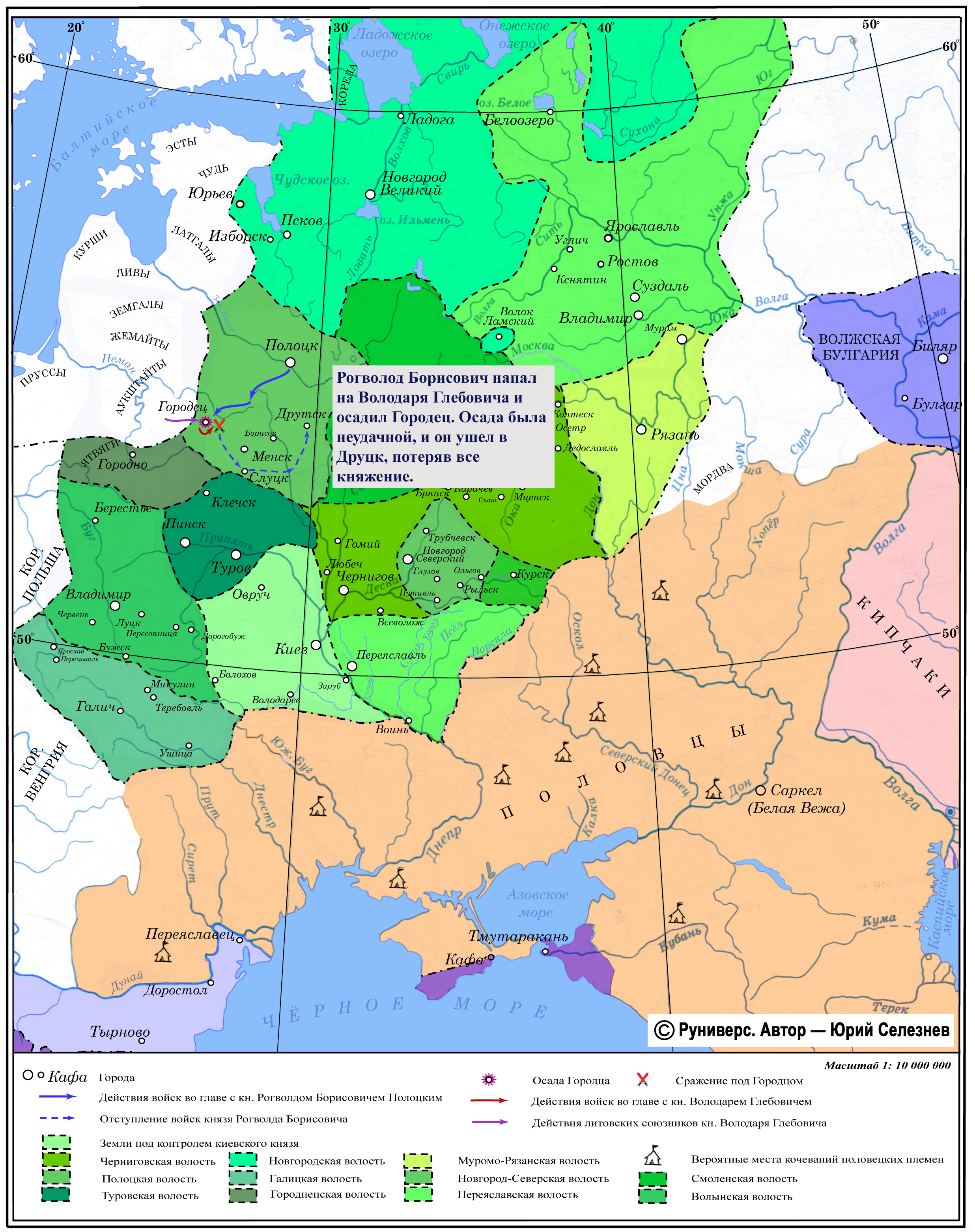 Рогволод Борисович напал на Володаря Глебовича и осадил Городец. Осада была неудачной, и он ушел в Друцк, потеряв все княжение.