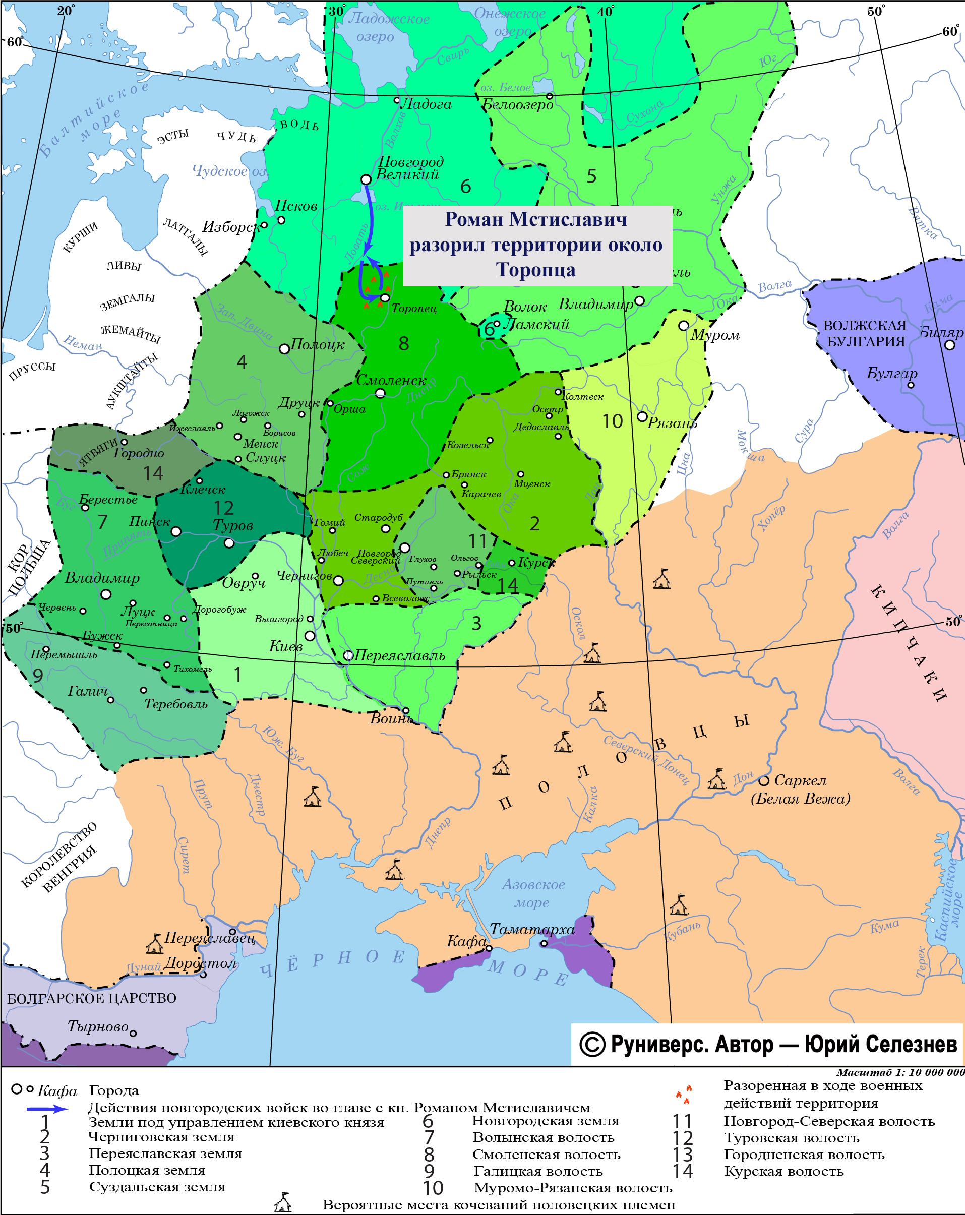 Сын киевского князя Мстислава Изяславича Роман, с 1168 г. занимавший новгородский стол, разорил весной 1169 г. территории около Торопца, который являлся владением смоленских Ростиславичей, союзных в тот момент князю Андрею Юрьевичу Суздальскому.