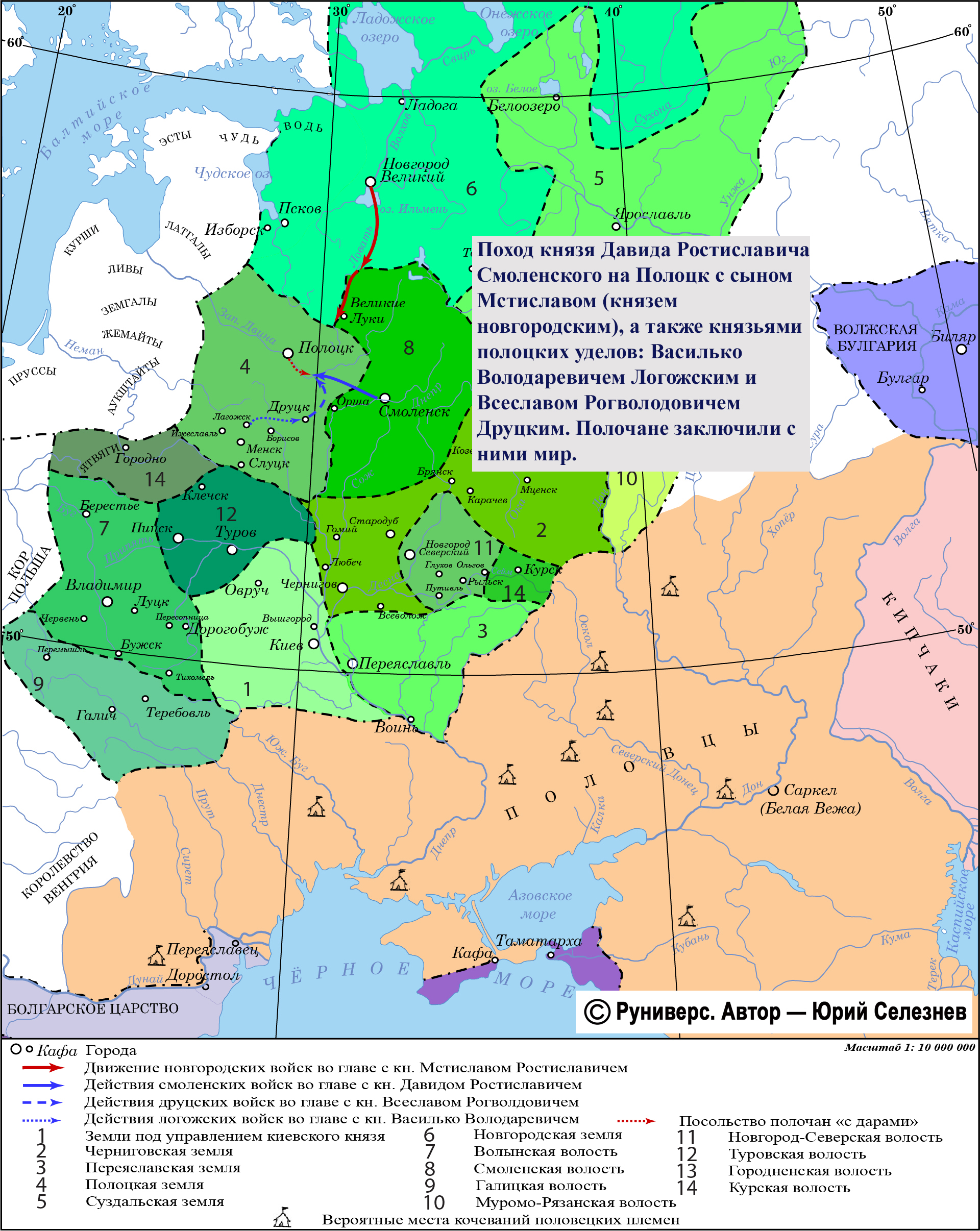 Поход князя Давида Ростиславича Смоленского на Полоцк с сыном Мстиславом (князем новгородским), а также князьями полоцких уделов: Василько Володаревичем Логожским и Всеславом Рогволодовичем Друцким.