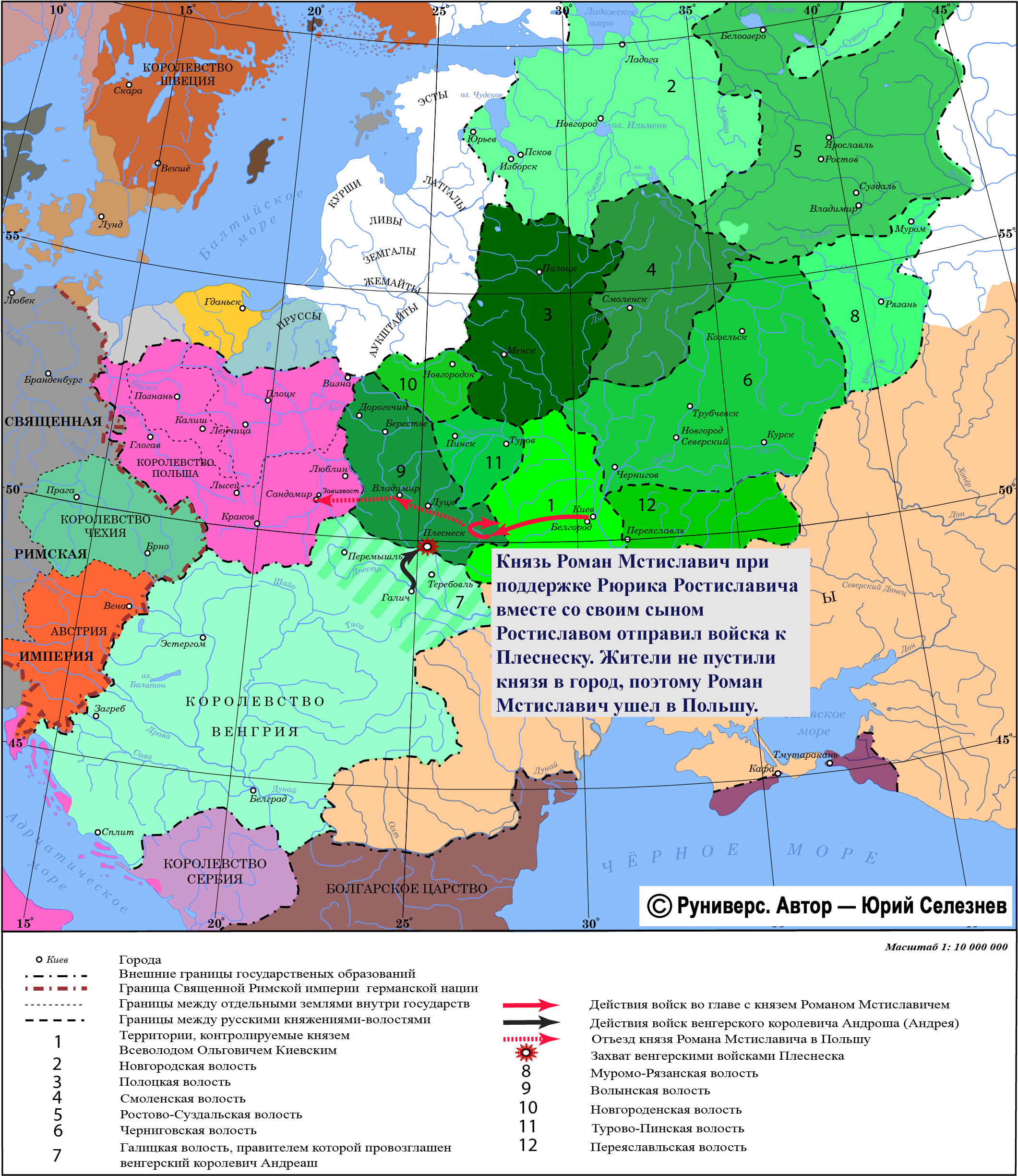 Убежавший из Галича князь Роман Мстиславич заручился поддержкой князя Рюрика Ростиславича (кн. овручского), который направил отряд во главе со своим сыном Ростиславом к Плеснеску. Однако жители не пустили князя в город, а позже его заняли венгерские войска. Отпустив Ростислава Рюриковича с войском в Овруч, Роман Мстиславич направился в Польшу искать себе более сильного союзника.