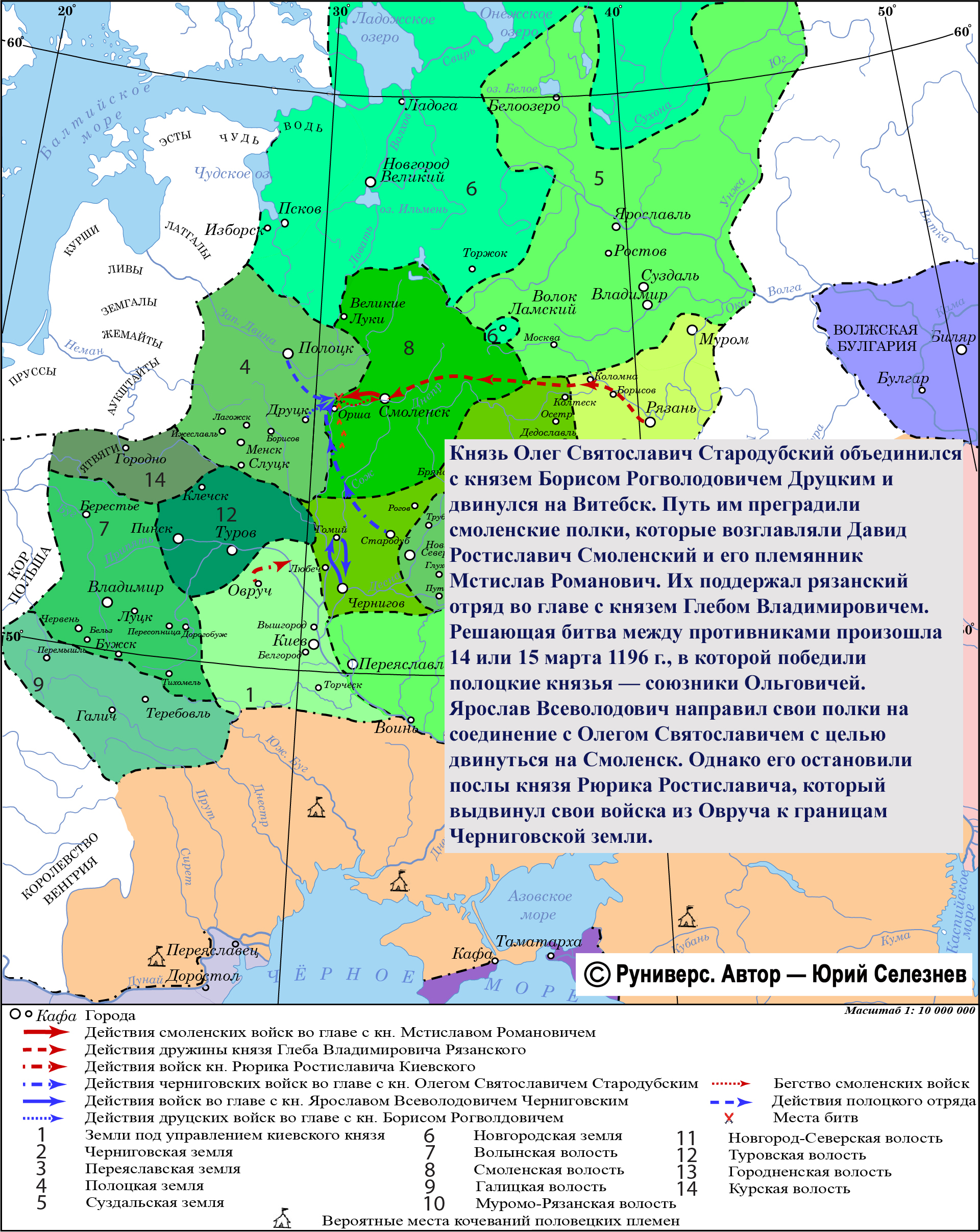 Решающая битва между противниками произошла 14 или 15 марта 1196 г. В ней победили полоцкие князья, союзники Ольговичей.