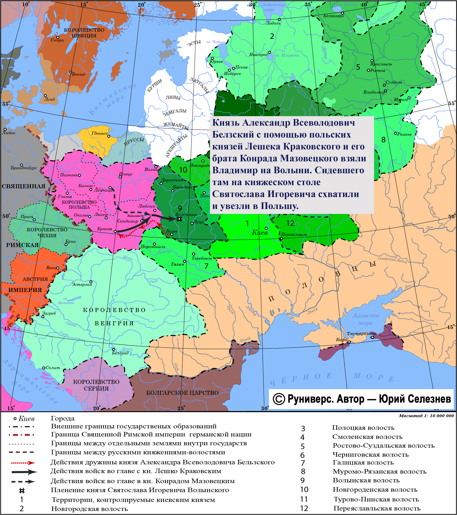 В борьбу за Волынь включился князь Александр Всеволодович Белзский, который обратился за поддержкой к польским князьям. Князья Лешек Краковский и его брат Конрад Мазовецкий подошли к Владимиру на Волыни. Сидевшего там на княжеском столе Святослава Игоревича схватили и увезли в Польшу.