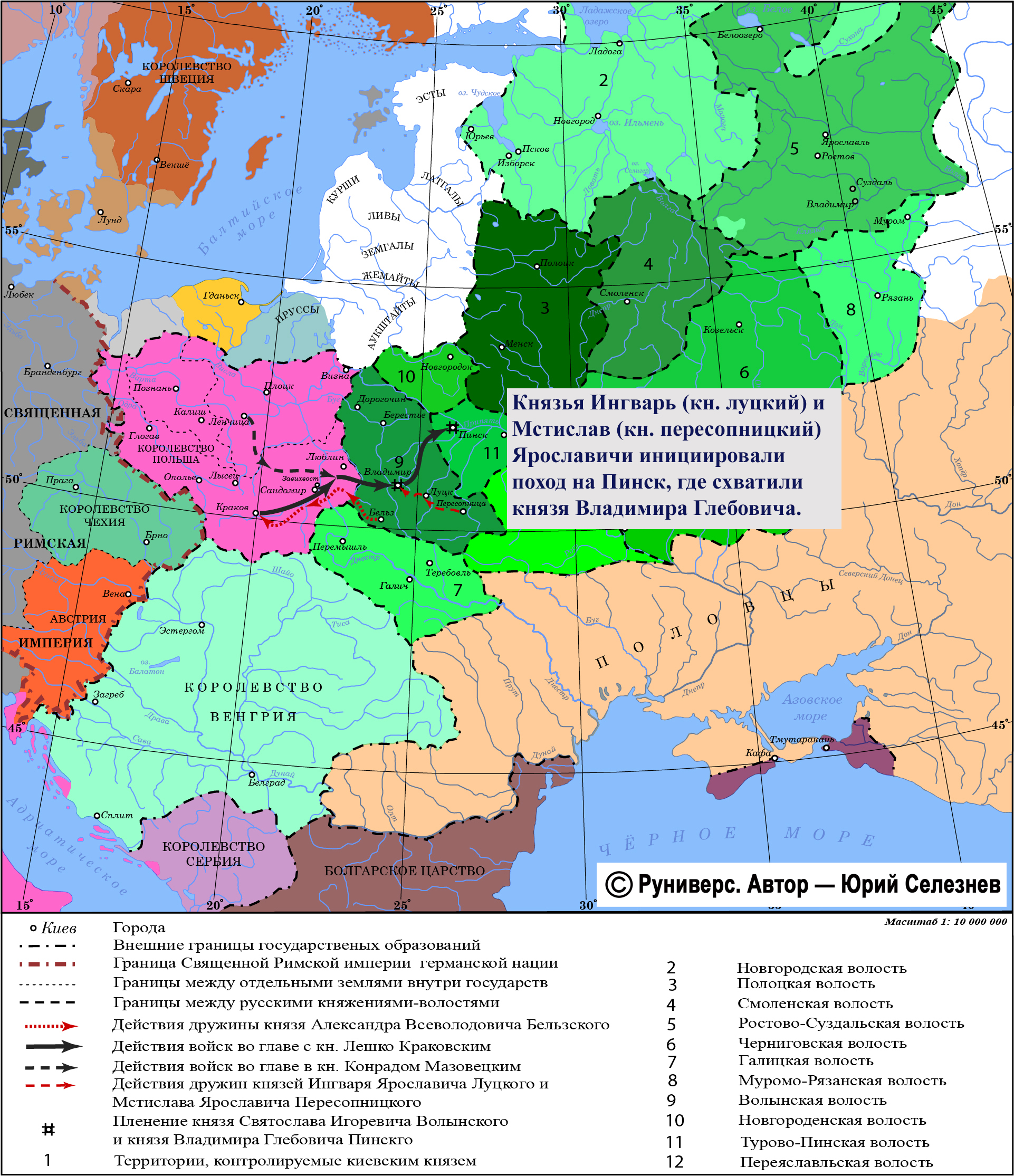 Князья Ингварь (кн. луцкий) и Мстислав (кн. пересопницкий) Ярославичи инициировали поход на Пинск, где схватили князя Владимира Глебовича.