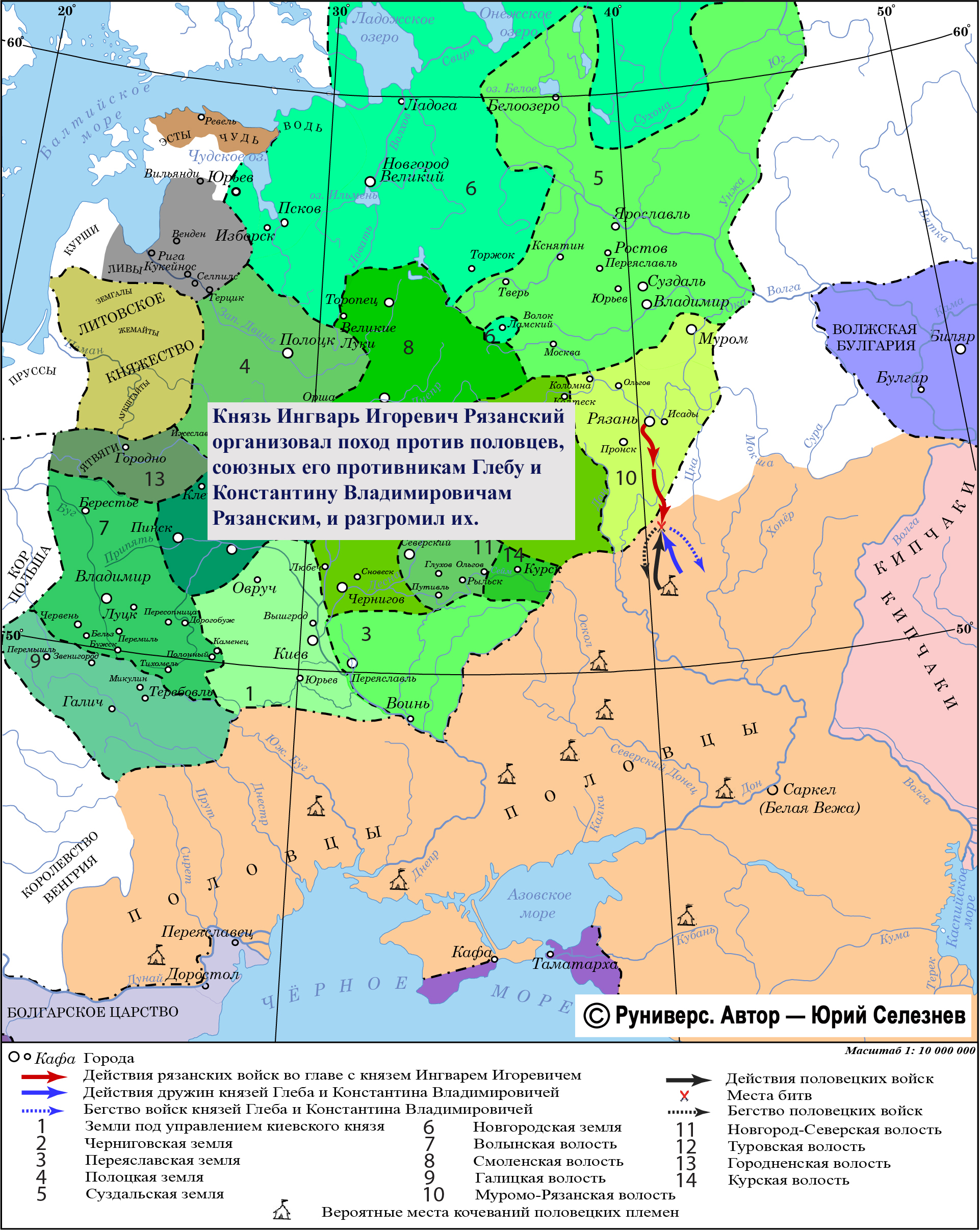 Князь Ингварь Игоревич Рязанский организовал поход против половцев, союзных его противникам Глебу и Константину Владимировичам Рязанским и разгромил их.