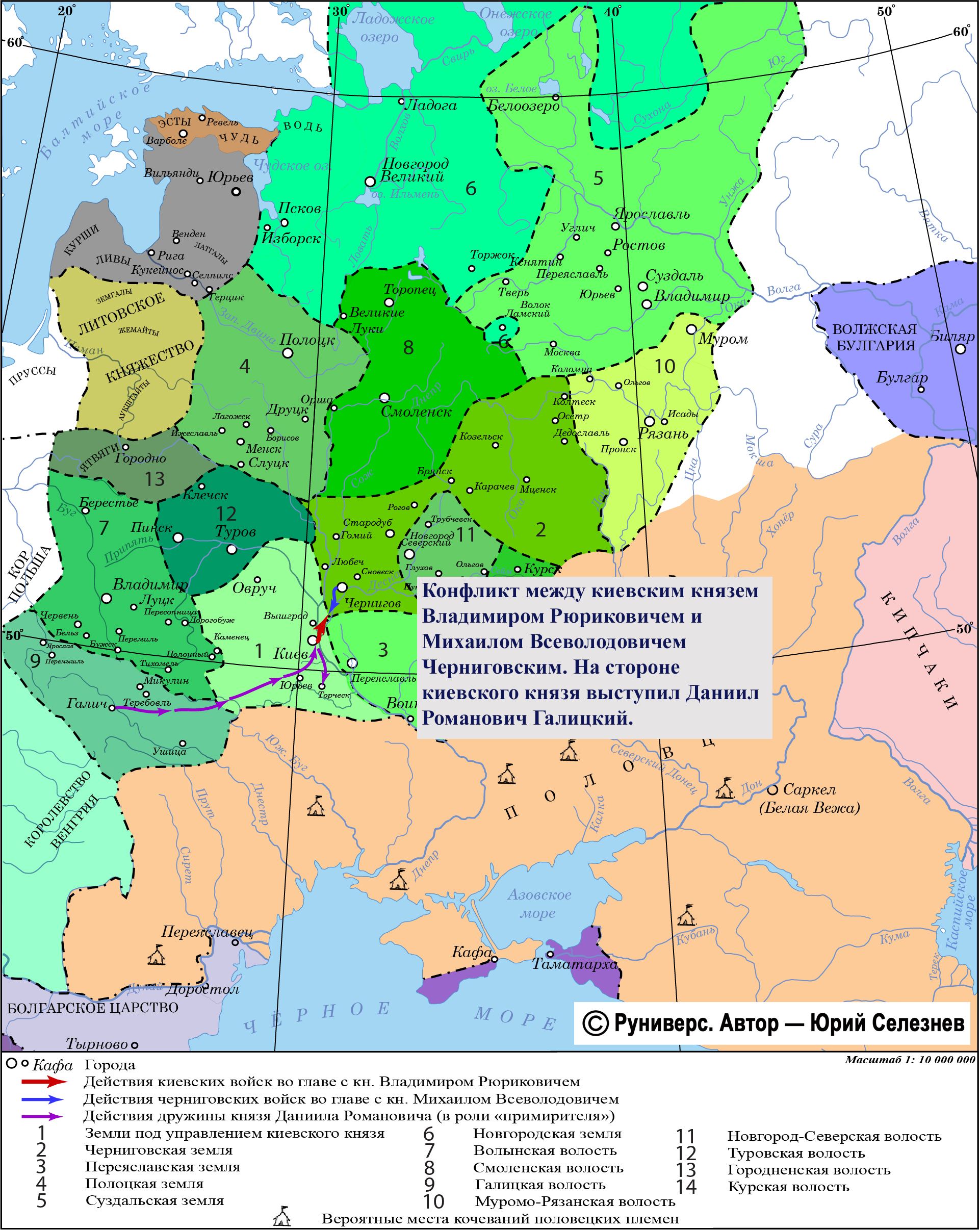 Конфликт между киевским князем Владимиром Рюриковичем и Михаилом Всеволодовичем Черниговским. На стороне киевского князя выступил Даниил Романович Галицкий. За свое участие в усобице князь Даниил получил от Владимира Торческ, который он отдал детям Мстислава Мстиславича Удатного, находившимся под опекой Романовичей.