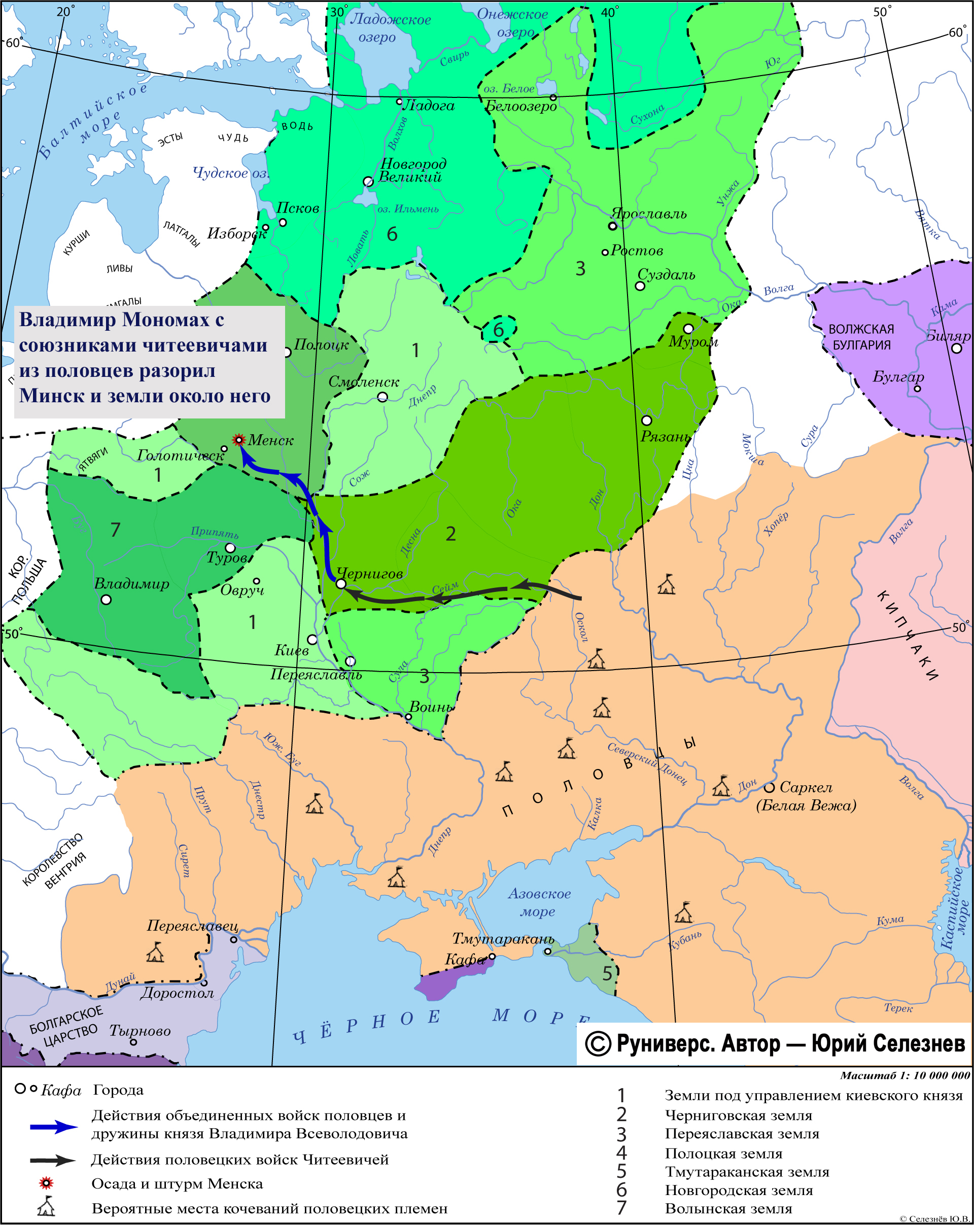 Владимир Мономах с союзниками читеевичами из половцев разорил Минск и земли около него.