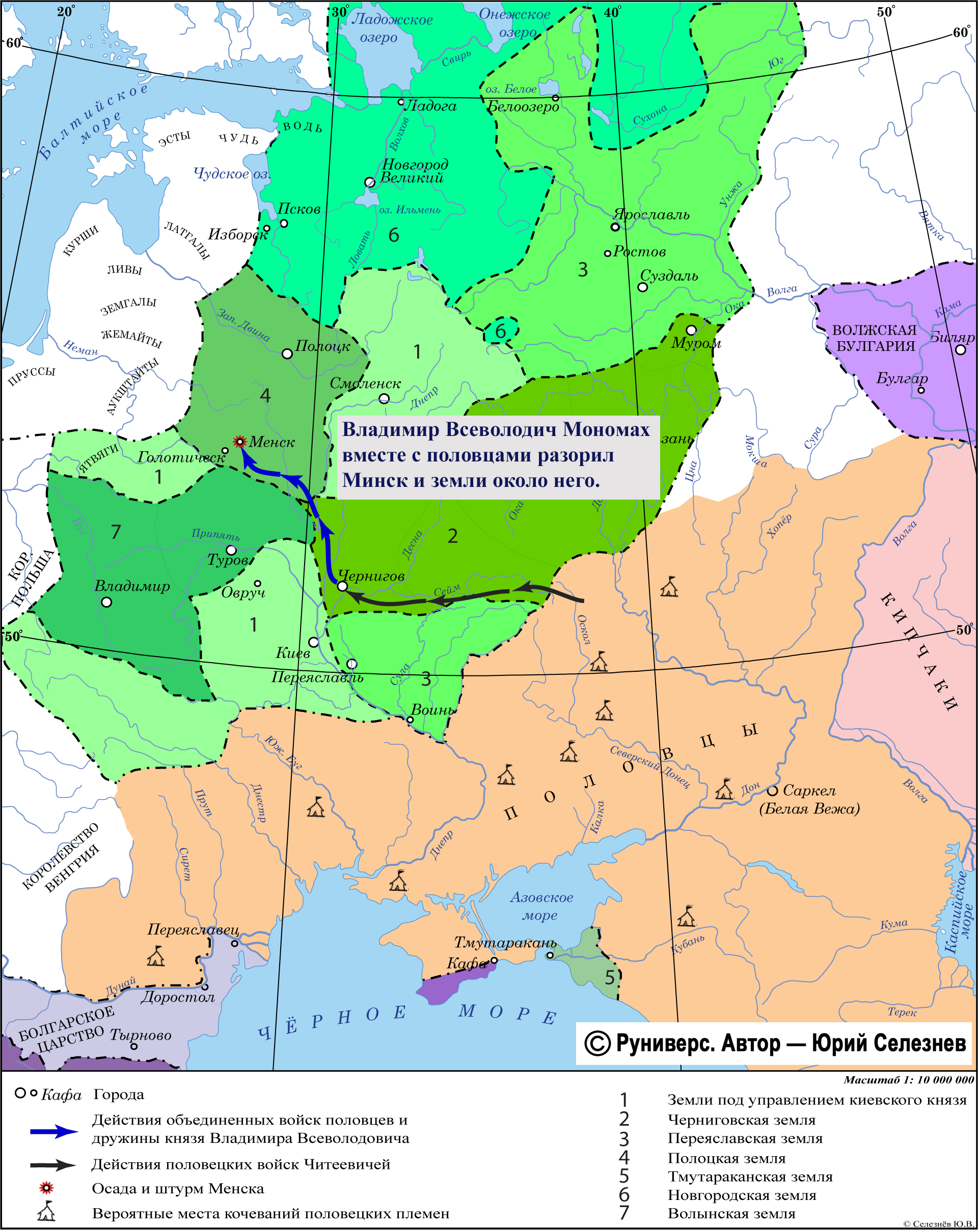 Владимир Всеволодич Мономах вместе с половцами разорил Минск и земли около него.