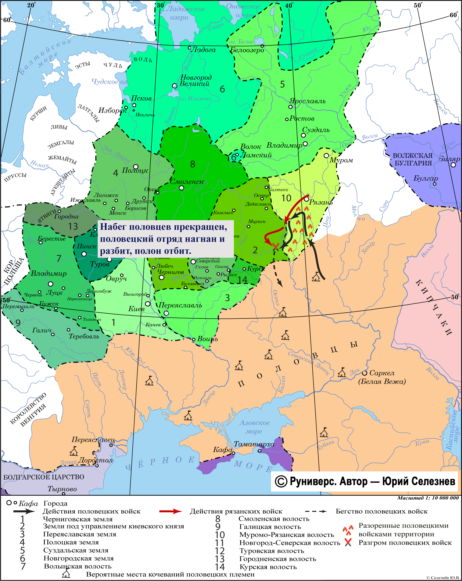Набег половцев прекращен, половецкий отряд нагнан и разбит, полон отбит.