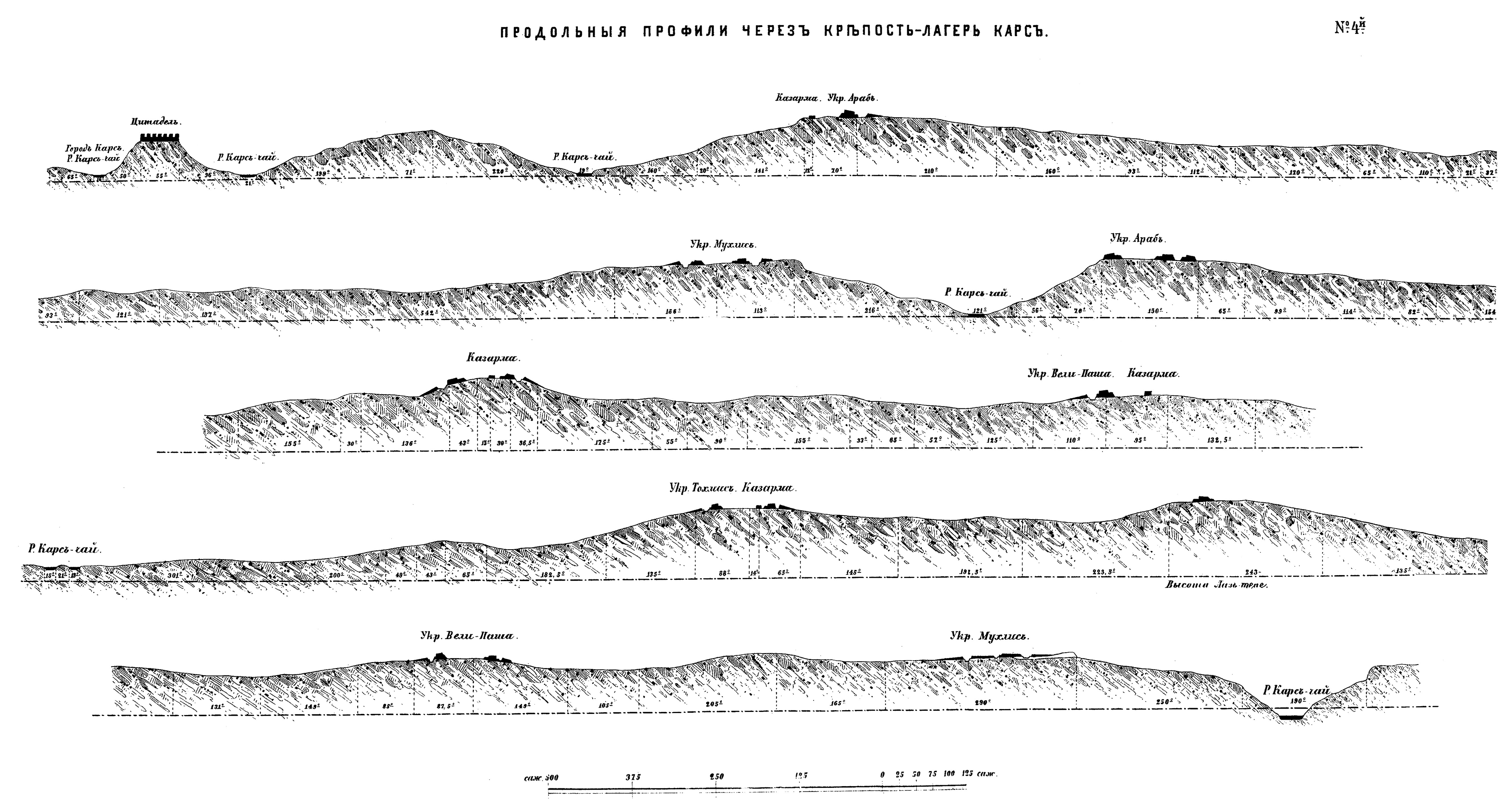 Продольные профили через крепость-лагерь Карс