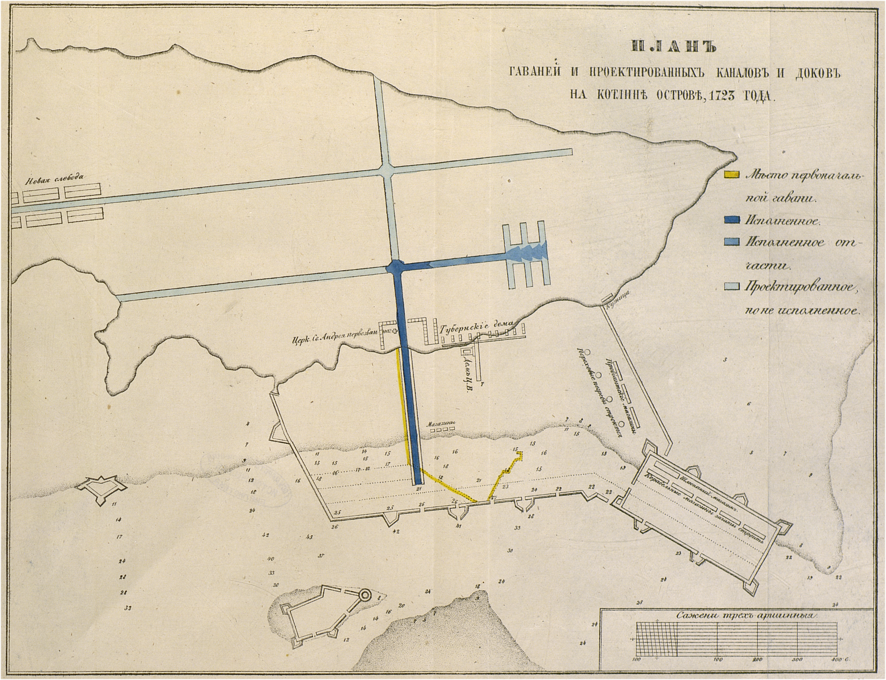 Гавани и проектированные каналы и доки на Котлине острове 1723 год