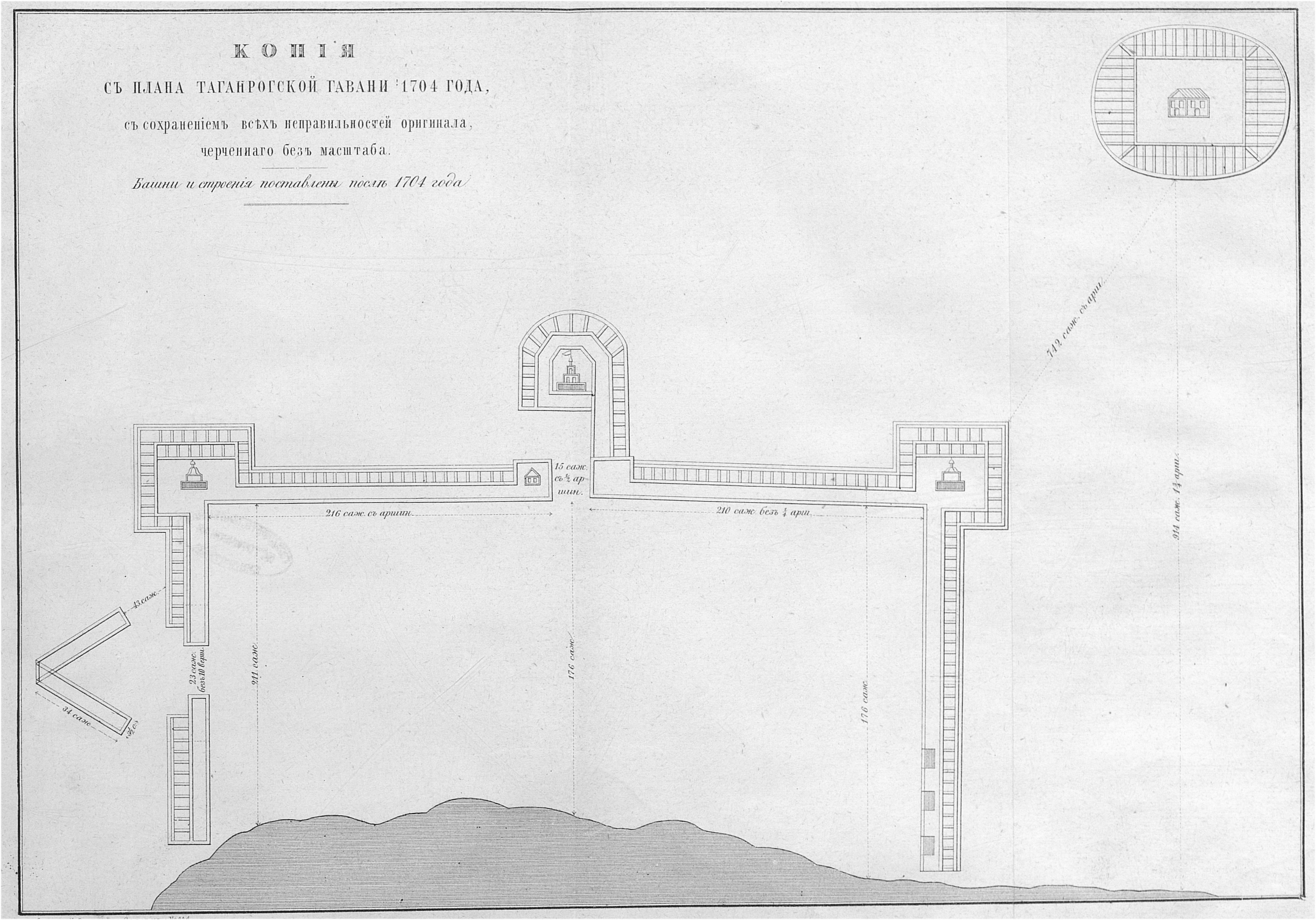Копия с плана Таганрогской гавани 1704 года, с сохранением всех неправильностей оригинала, черченного без масштаба