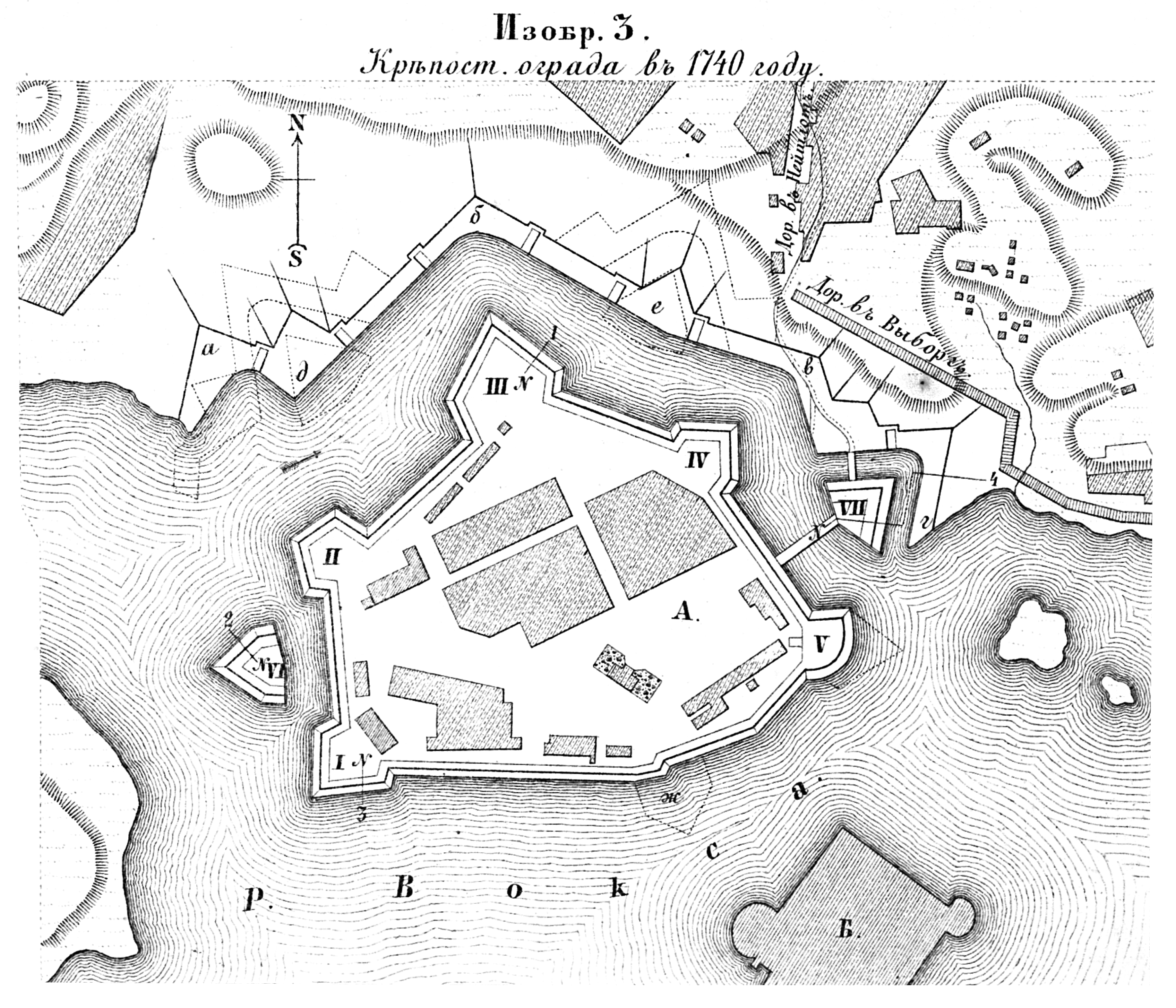 Крепость Кексгольм. Крепостная ограда в 1740 году