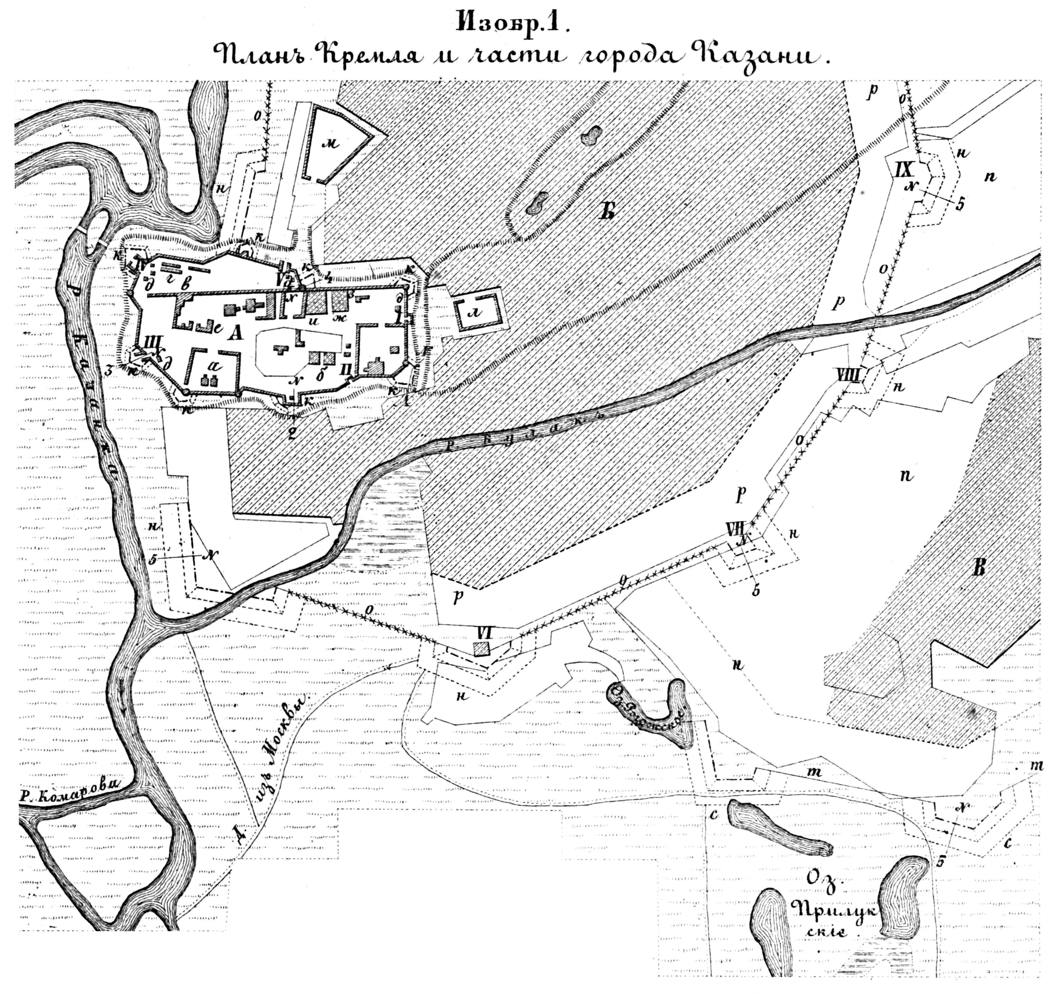 Казань, Черкаск, Уфа. План Кремля и части города Казани
