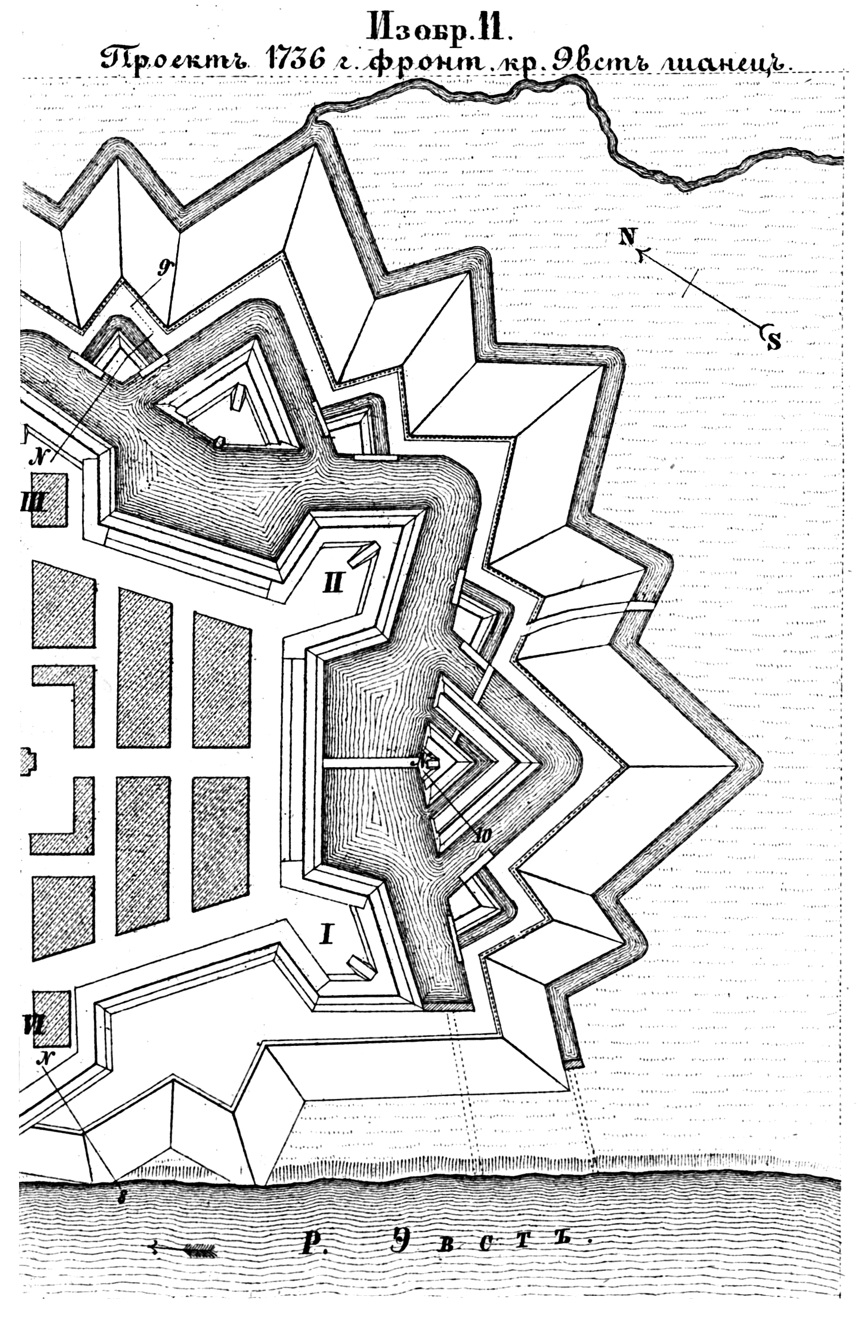 Способы укрепления. Изобр.11. Проект 1736 года фронтального укрепления Эвст-шанец