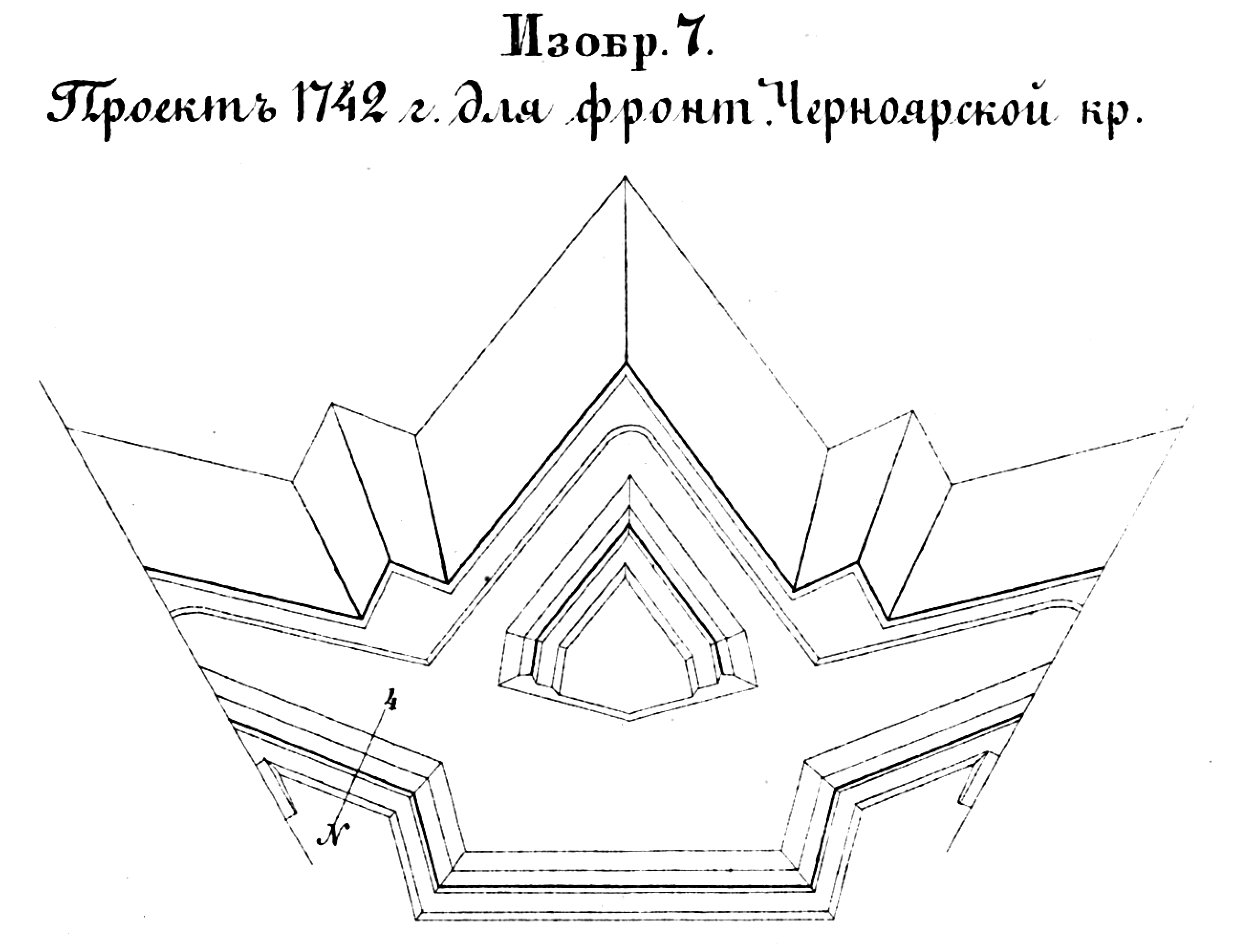 Способы укрепления. Изобр.7. Проект 1742 года фронтального укрепления Черноярской крепости