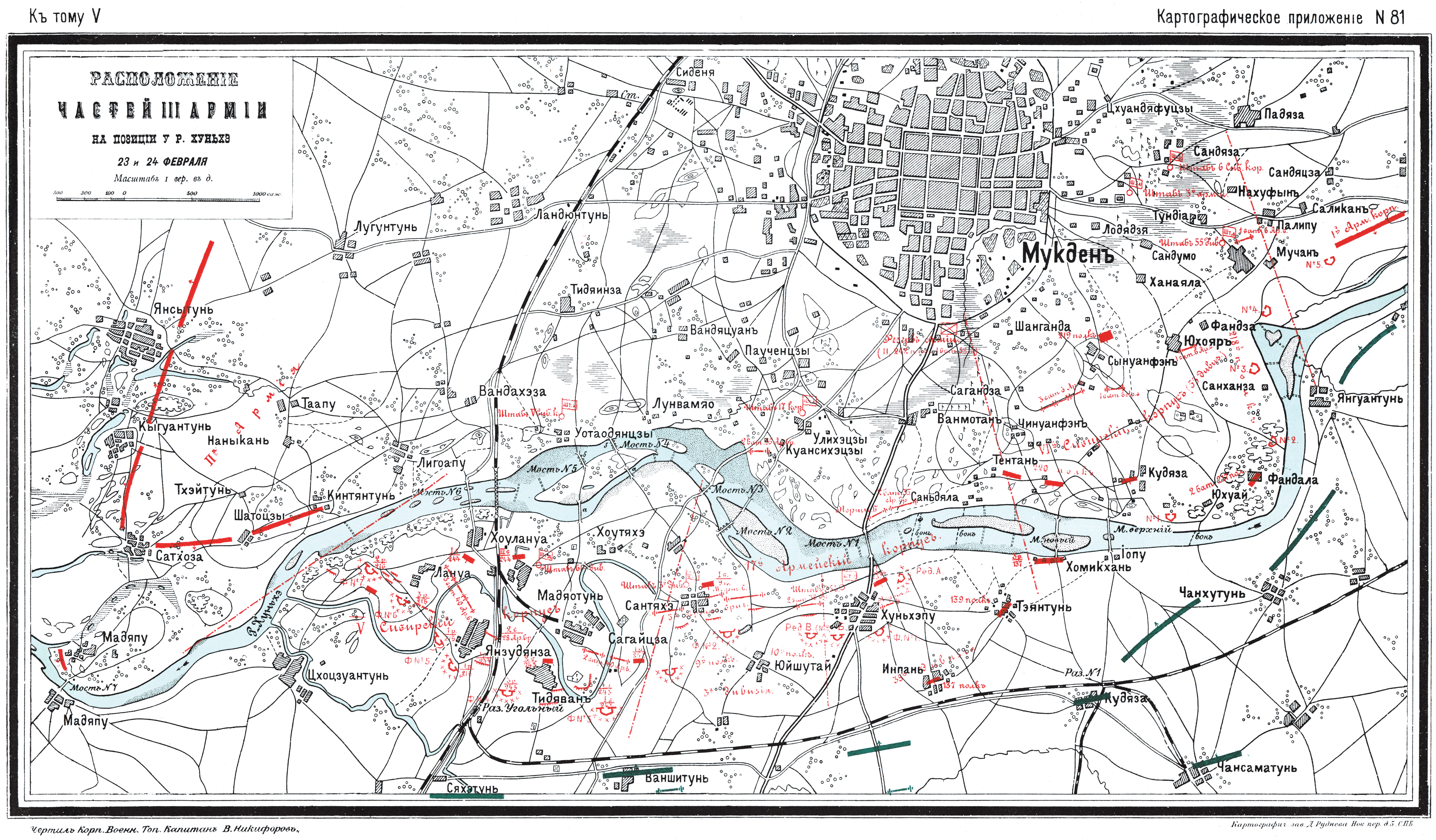 Расположение частей III Армии на позиции у реки Хуньхэ 23 и 24 февраля