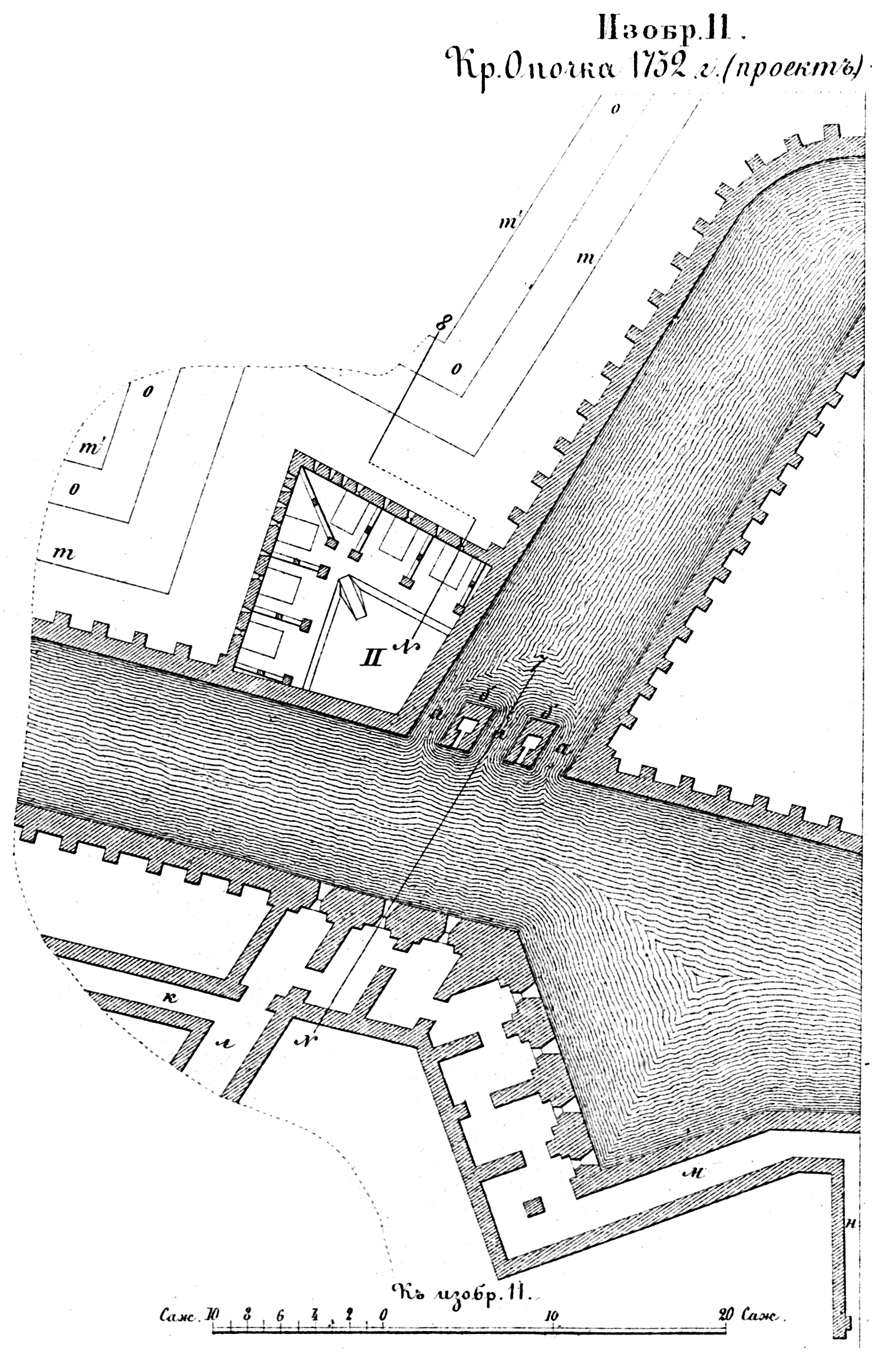 Способы укрепления. Изобр.11. Крепость Опочка 1732 года (проект)
