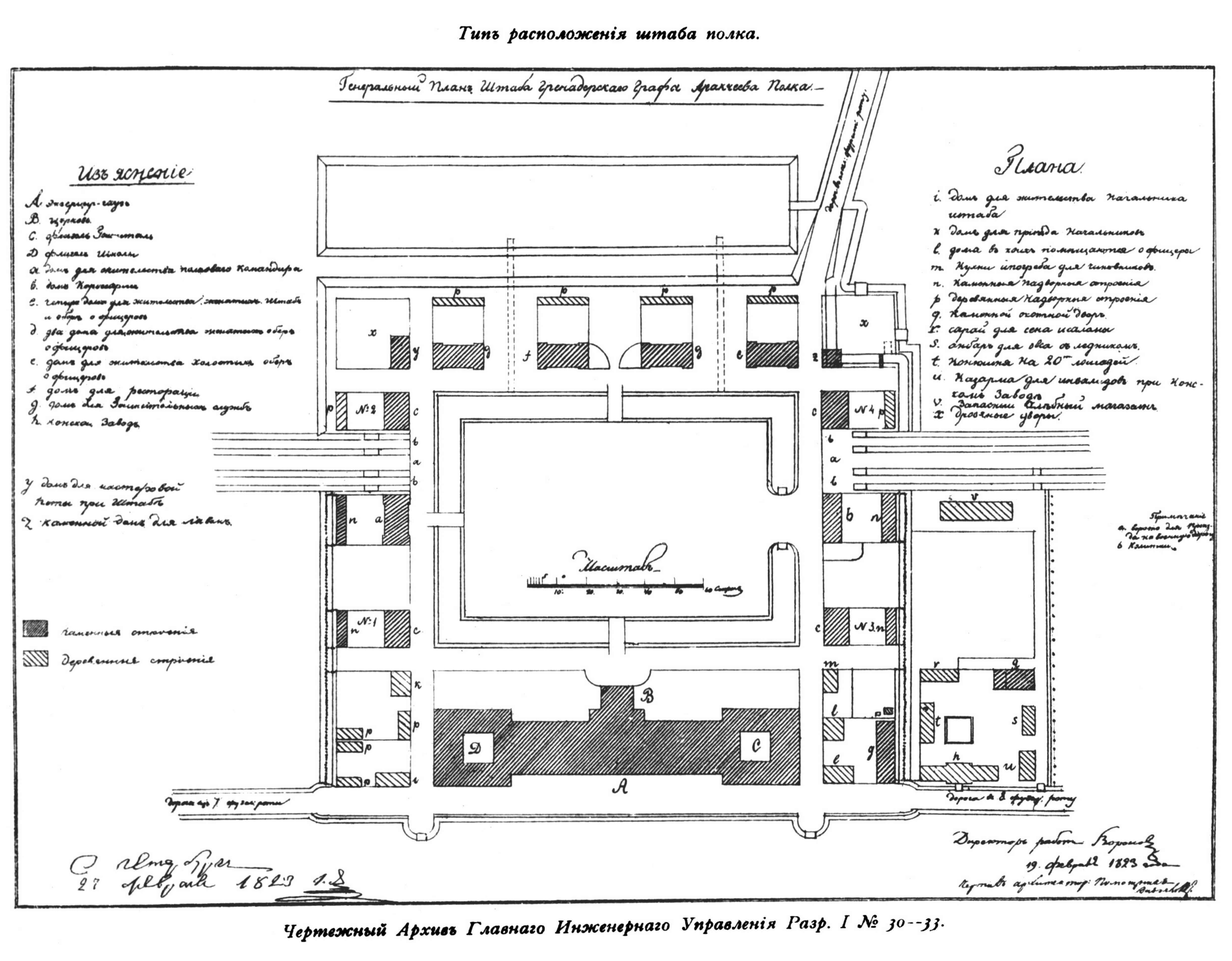 Тип расположения штаба полка. Генеральный план Штаба Гренадерского Графа Аракчеева полка