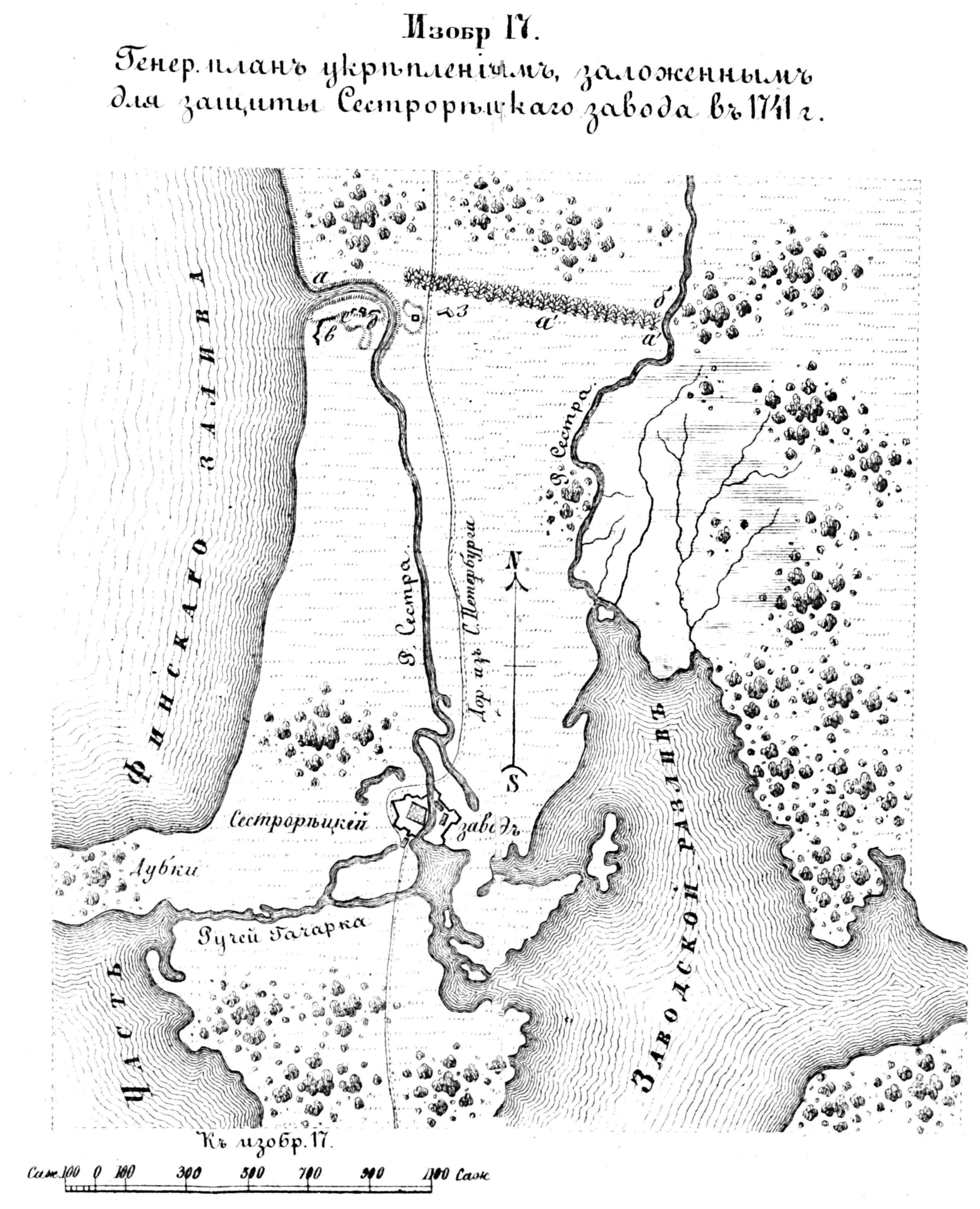 Полевые и временные укрепления. Изобр.17. Генеральный план укреплениям, заложенным для защиты Сестрорецкого завода в 1741 году