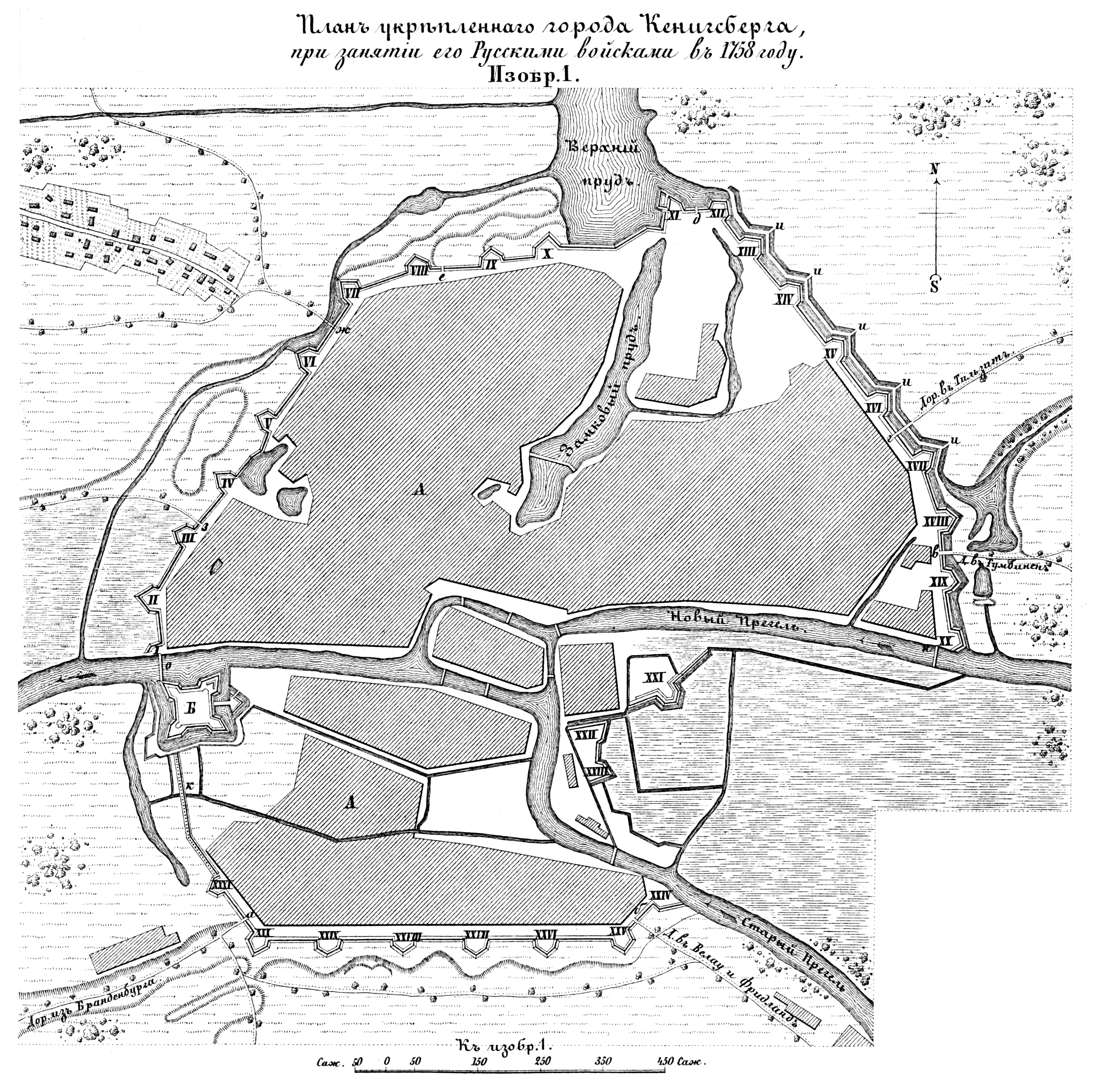 Полевые и временные укрепления. Изобр.1. План укрепленного города Кенигсберга, при занятии его русскими войсками в 1758 году