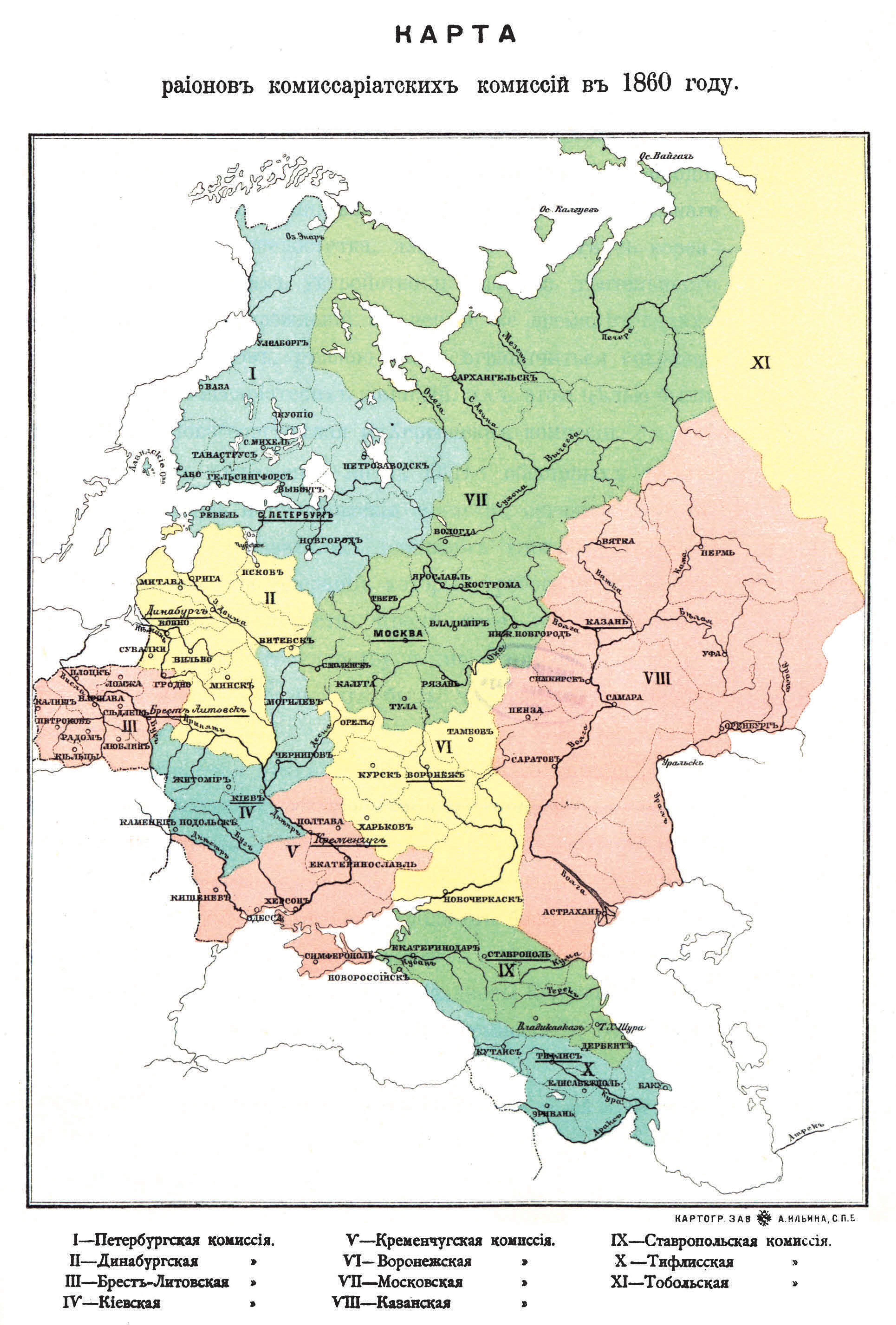 Районы комиссариатских комиссий в 1860 году