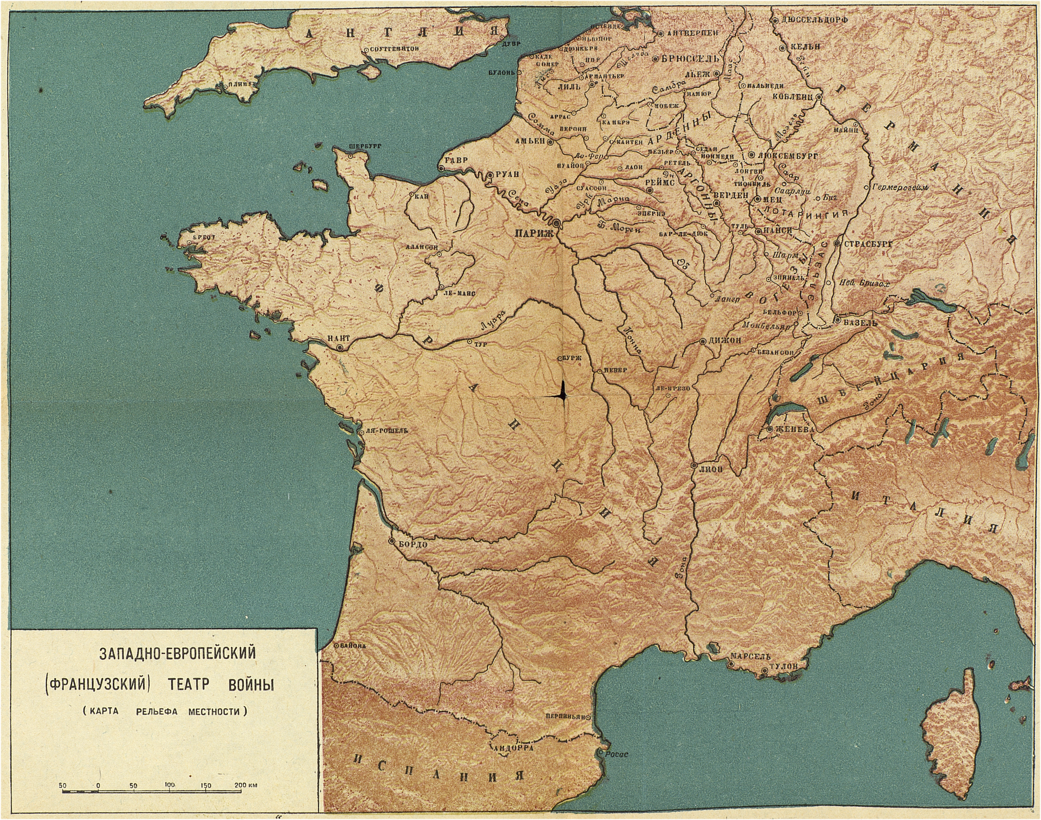 Подготовка к мировой войне 1914-1918 годов. Западно-Европейский (Французский) театр войны. (Карта рельефа местности)