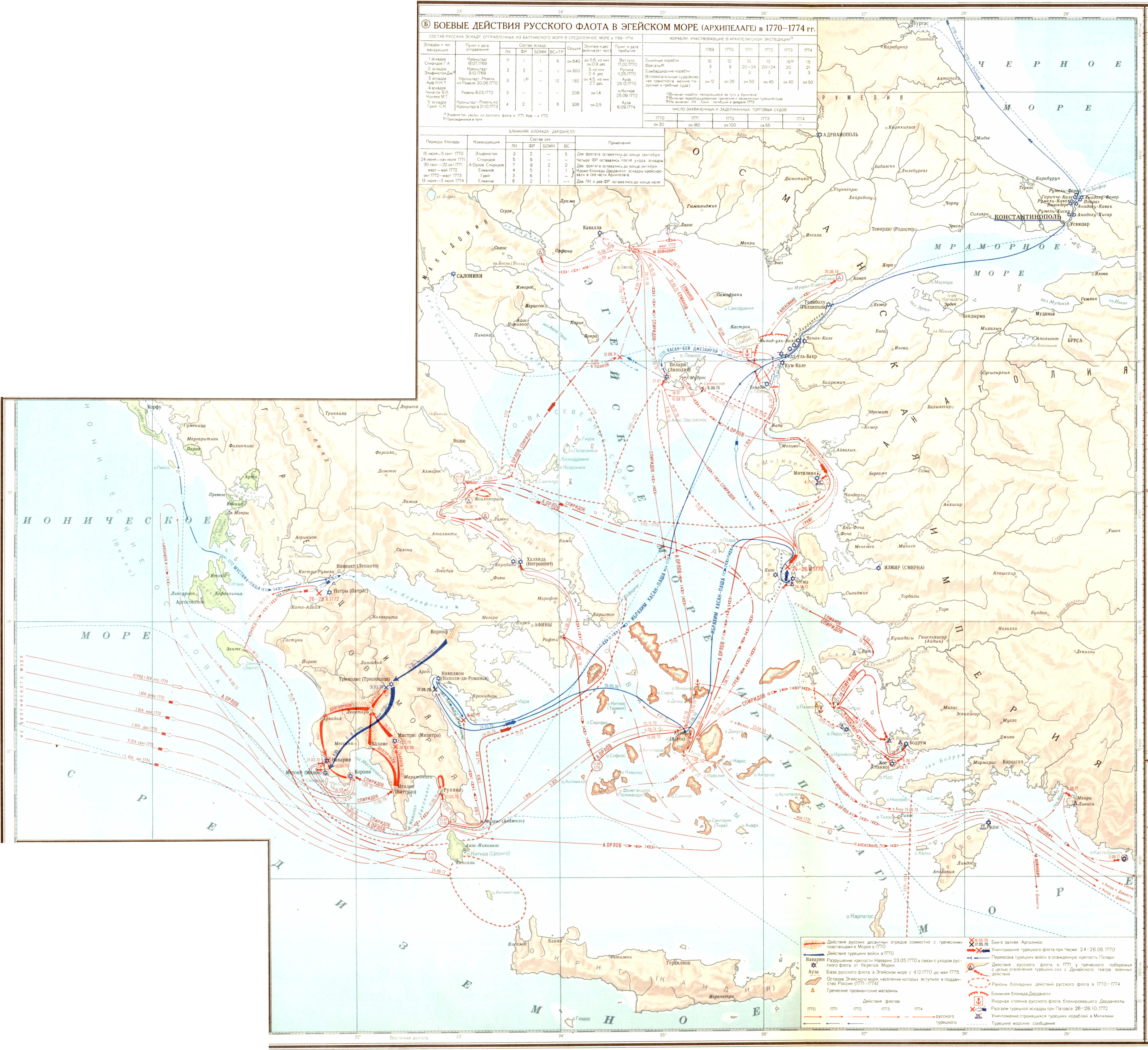 Русско-турецкая война 1768-1774 гг. Первая Архипелагская экспедиция русского флота 1769-1774 гг. (Б) Боевые действия русского флота в Эгейском море (Архипелаге) в 1770-1774 гг.