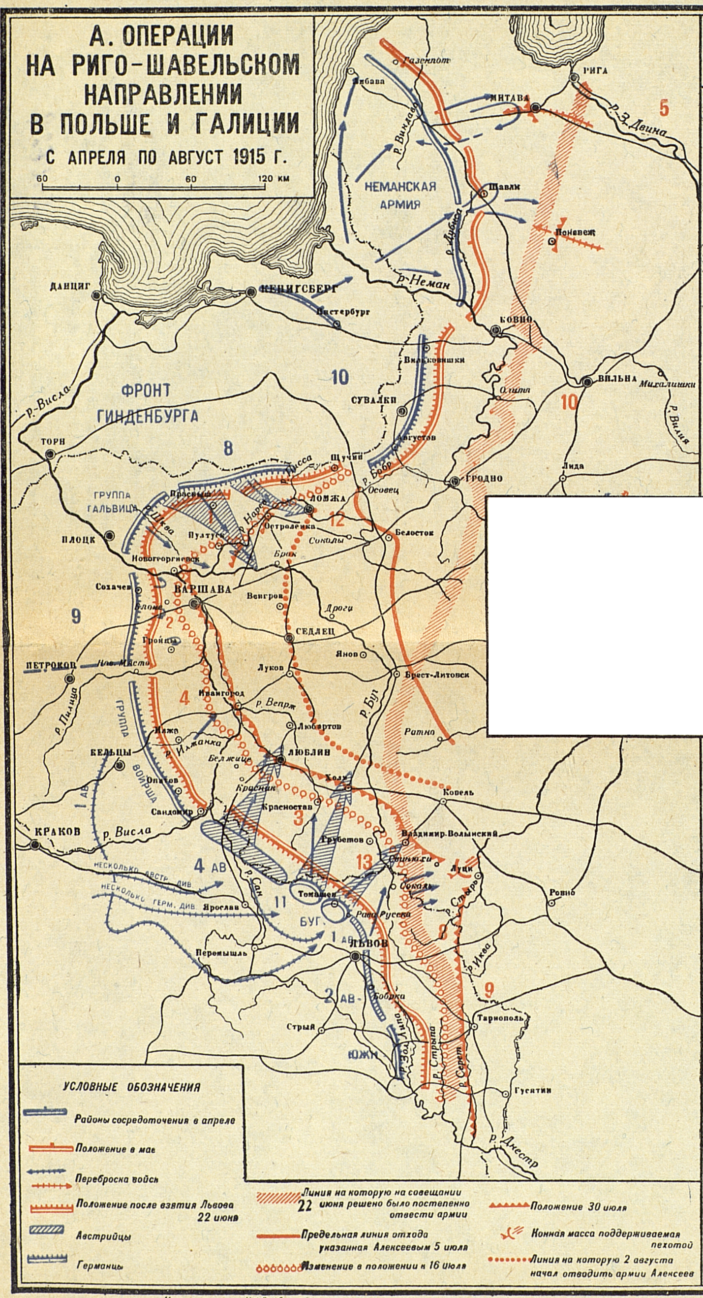 Кампания 1915 года. Русский театр. Отход русских армий. Операции на Риго-Щавельском направлении в Польше и Галиции (с апреля по август 1915 года)