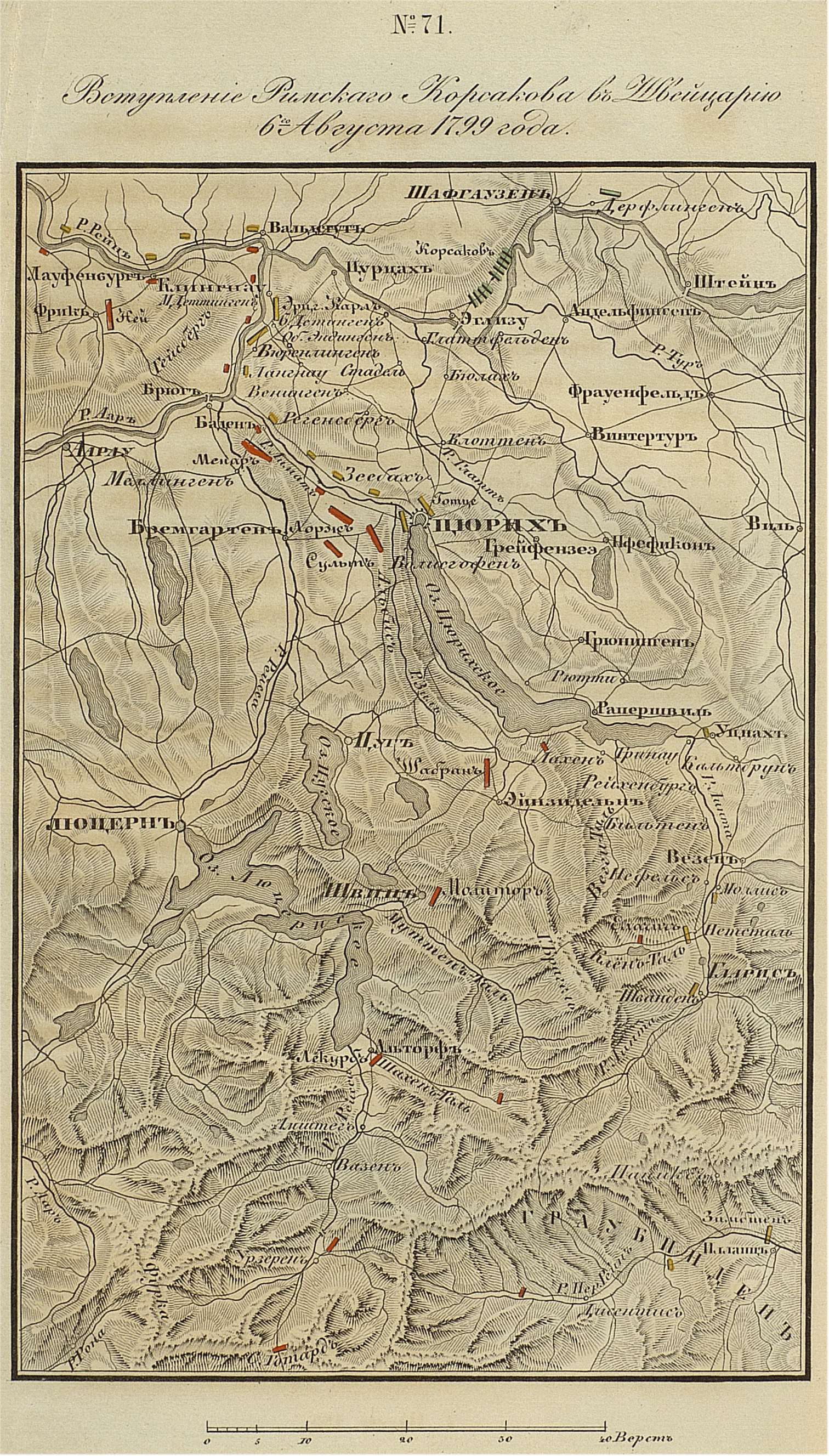 Вступление Римского-Корсакова в Швейцарию 6 августа 1799 года