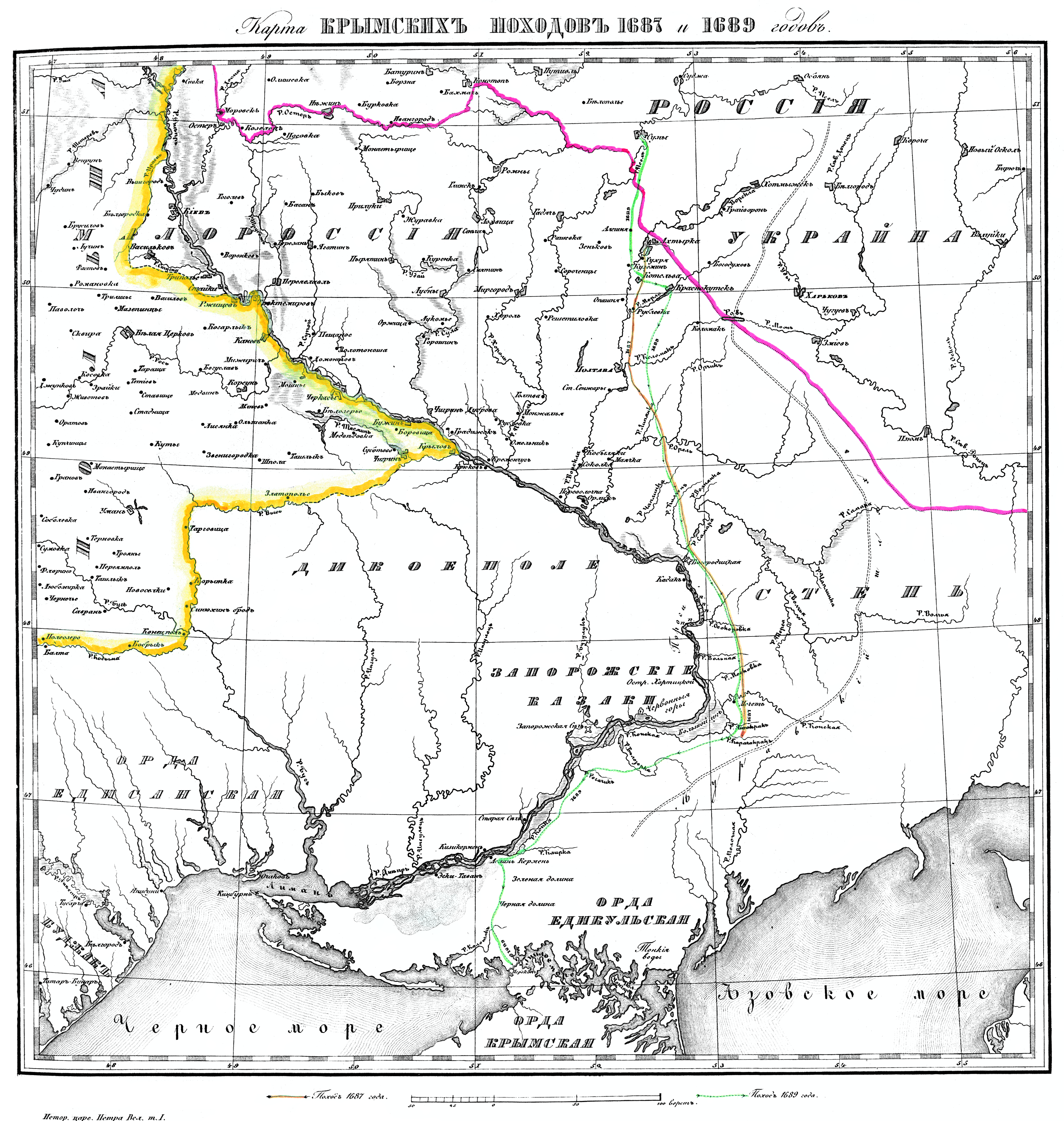 Карта Крымских походов 1687 и 1689 годов.
