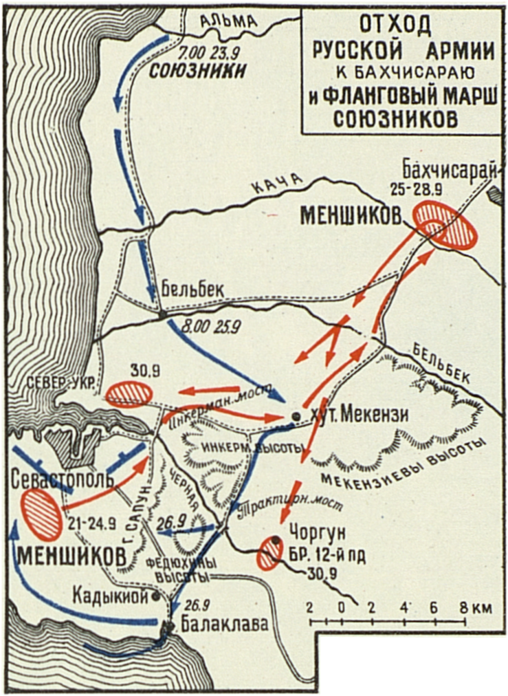 Отход русской армии к Бахчисараю и фланговый марш союзников