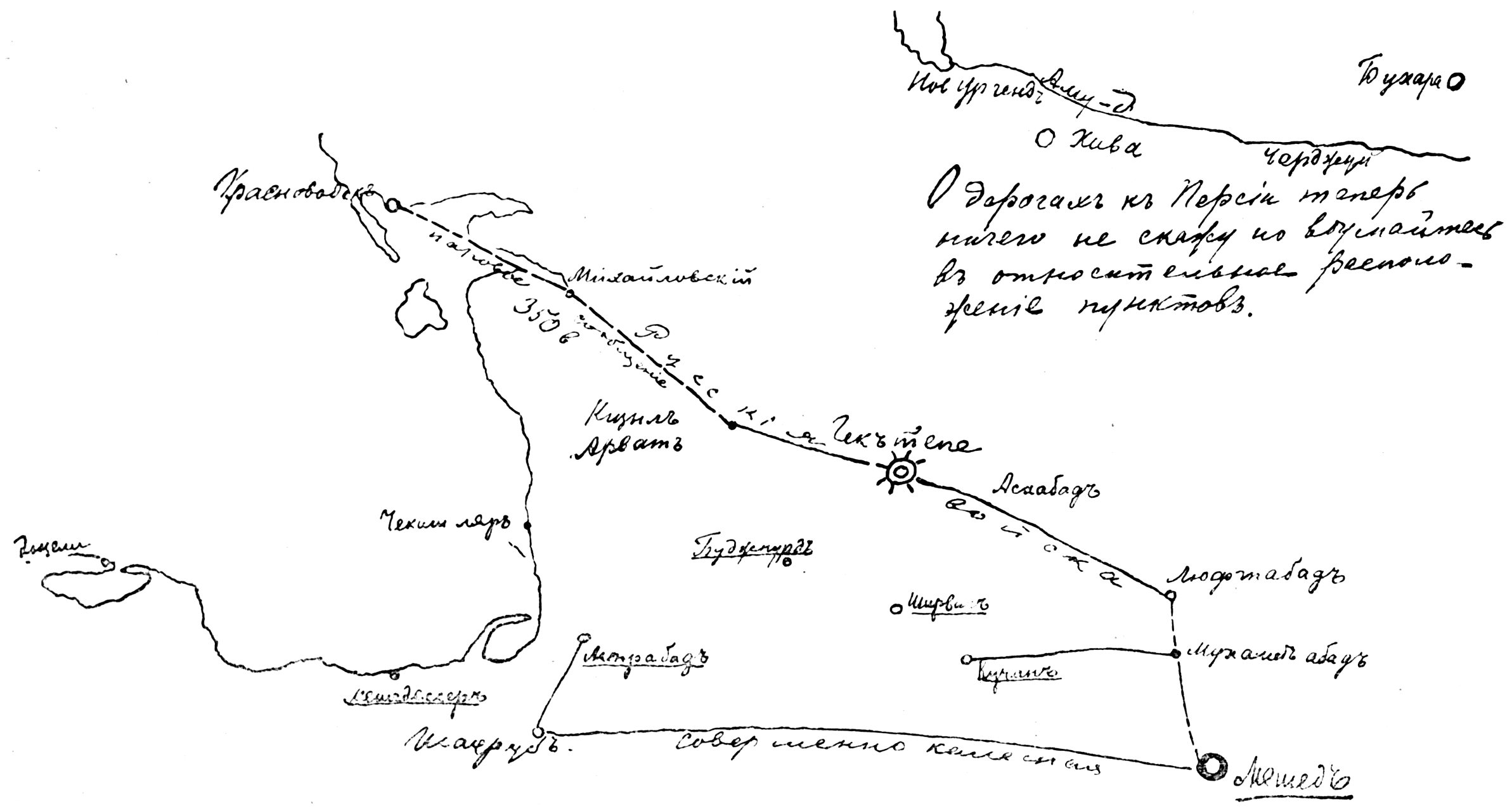 Дорога на Персию: Красноводск-Мешед. Собственноручный чертеж М.Скобелева в приложении к письму
