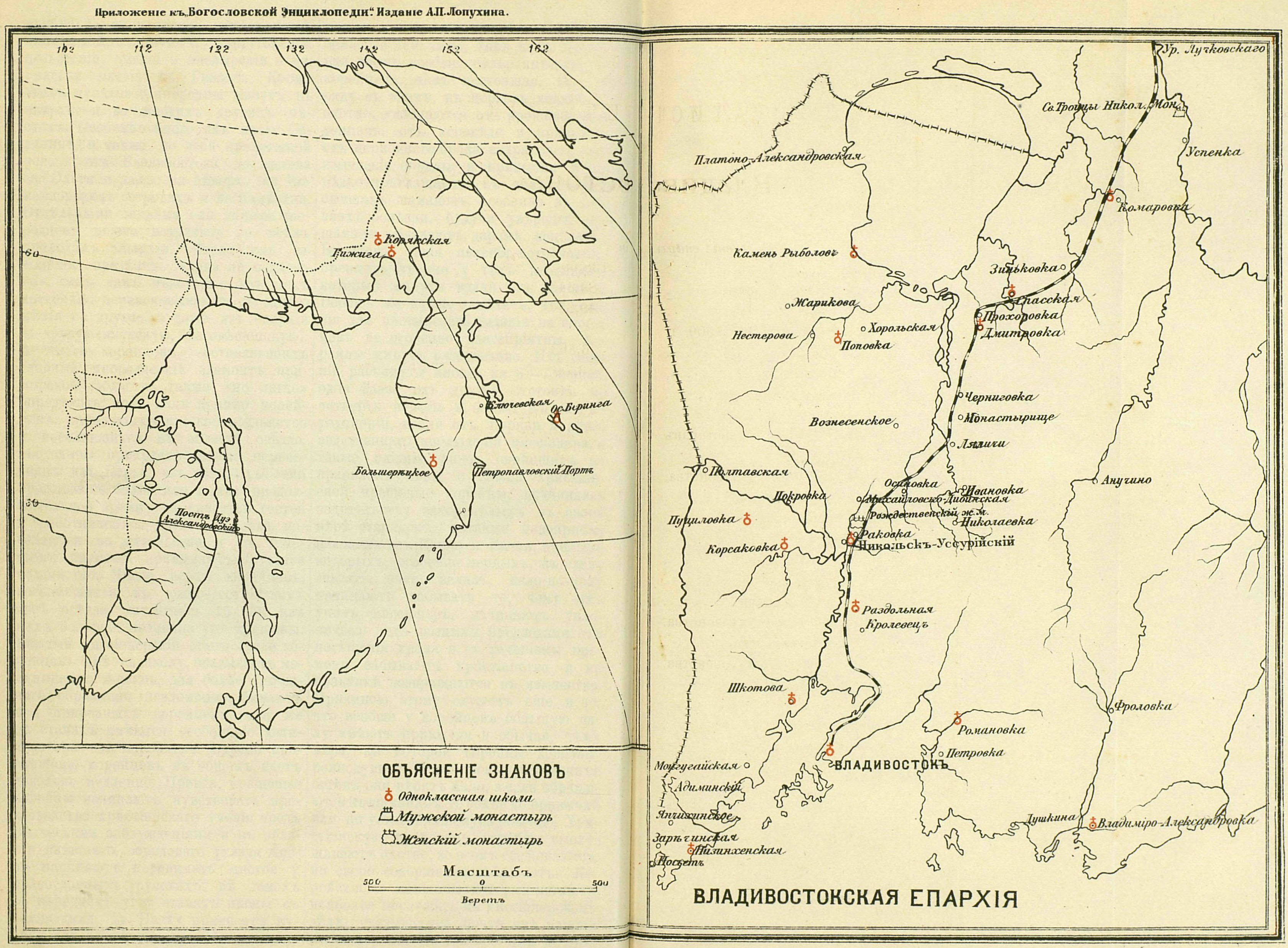 Владивостокская епархия. Расположение мужских и женских монастырей