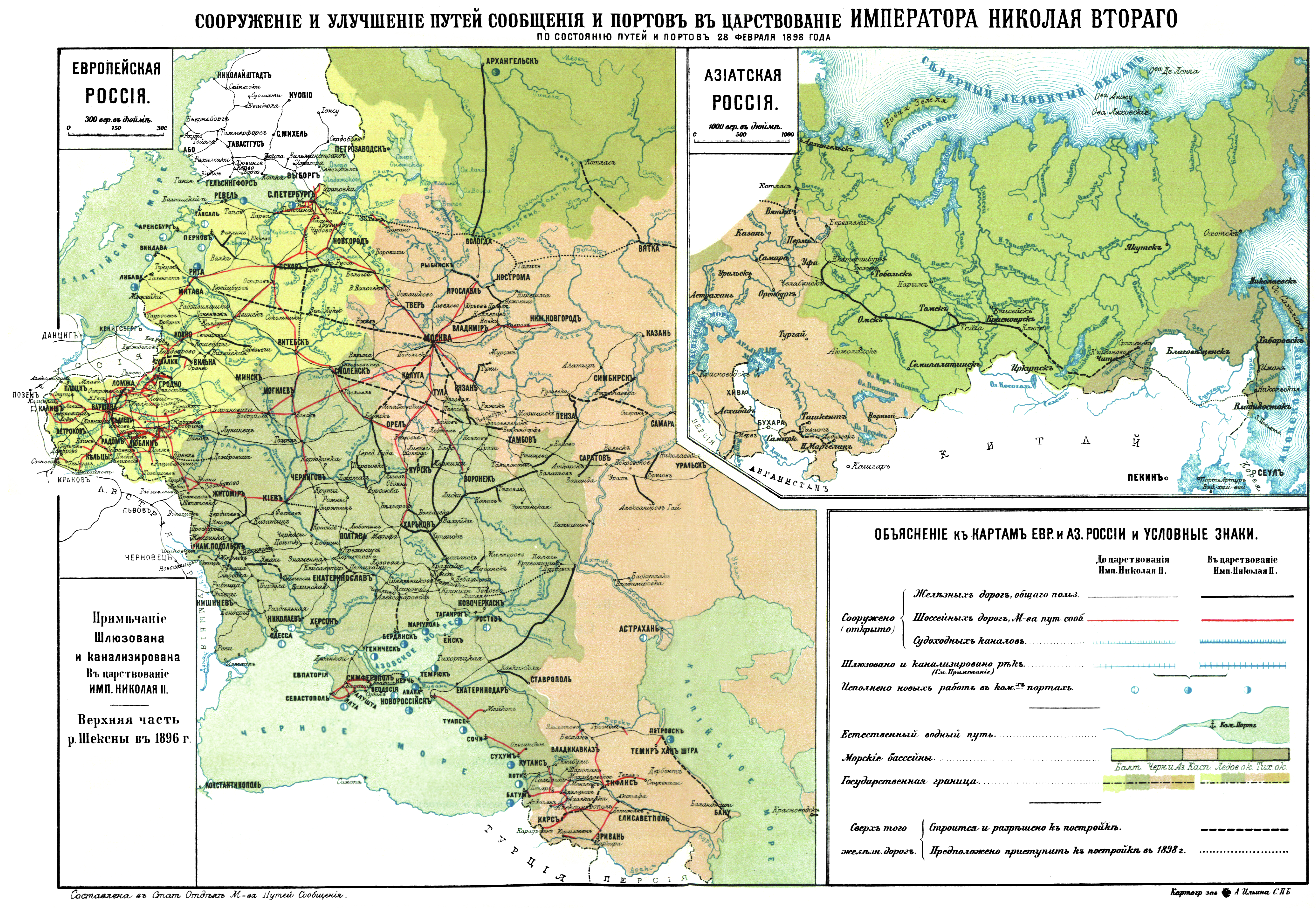 Сооружение и улучшение путей сообщения и портов в царствование Императора Николая Второго. Европейская часть России