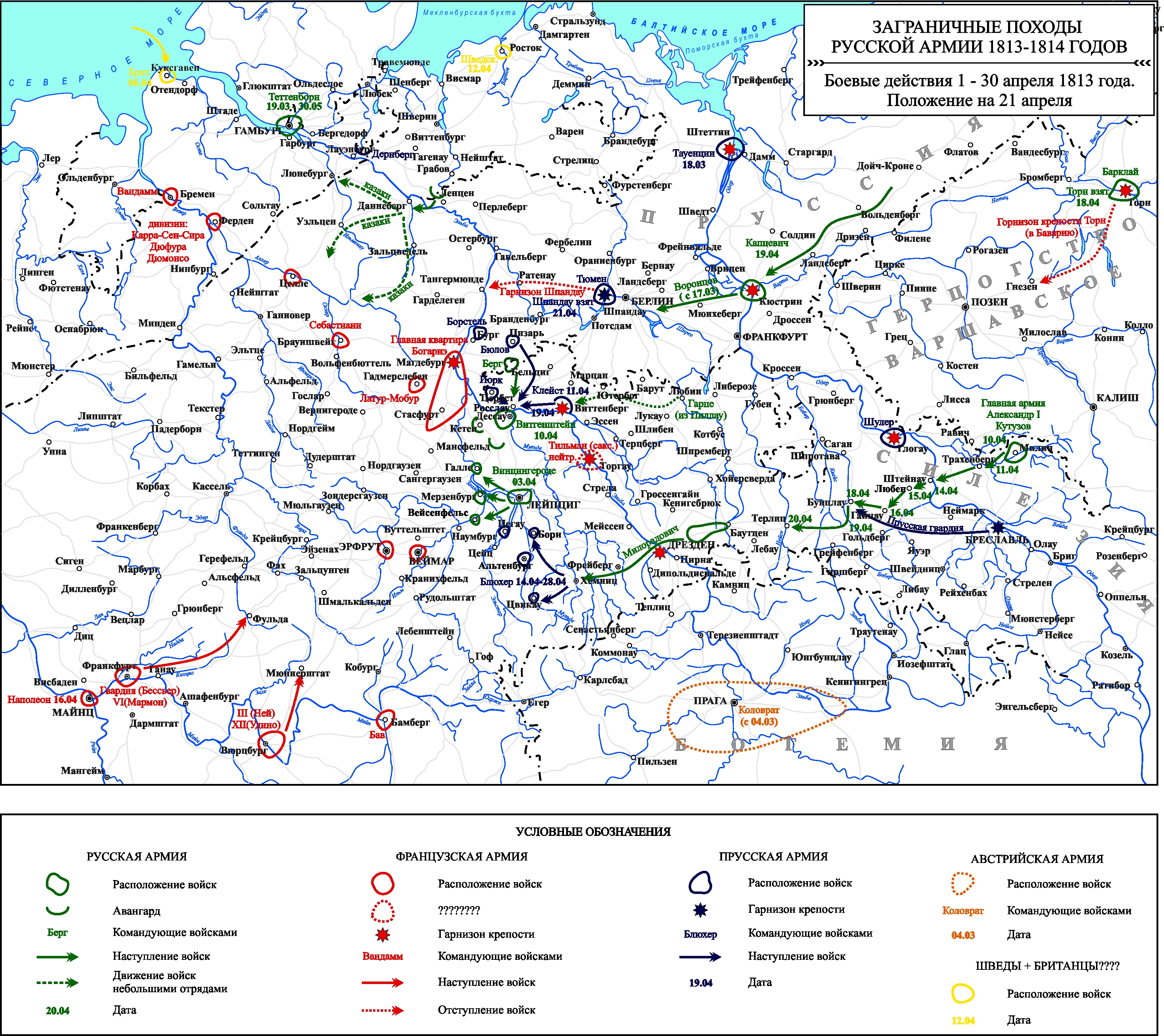 Заграничные походы Русской армии 1813-1814 гг. Положение на 21 апреля 1813 г.