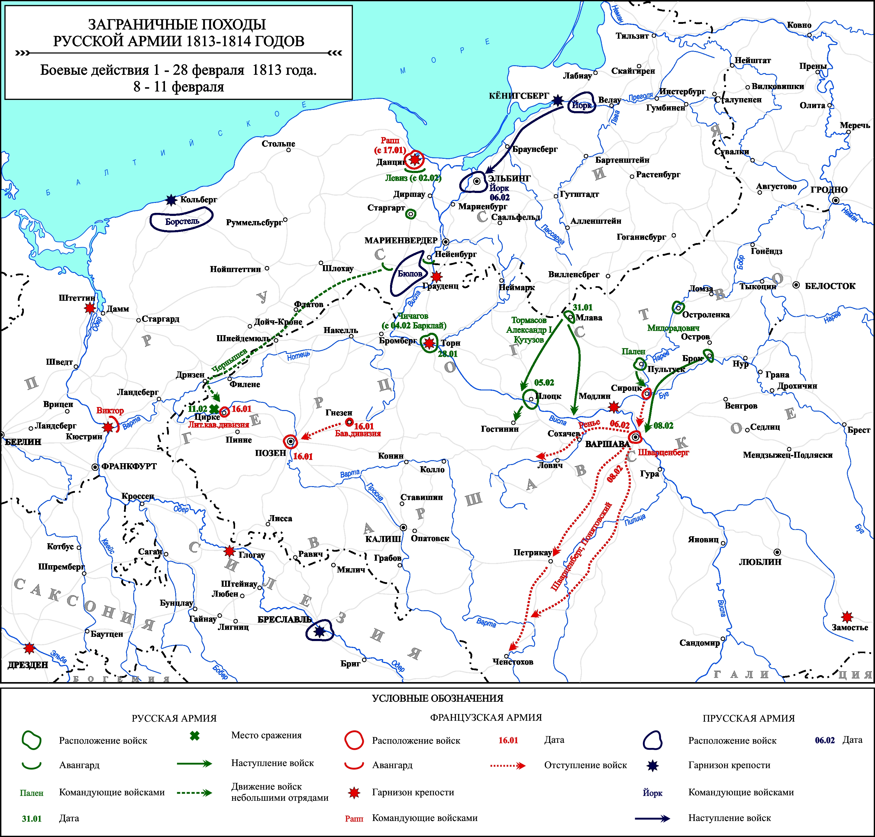 Заграничные походы Русской армии 1813-1814 гг. Положение на 1 февраля 1813 г.