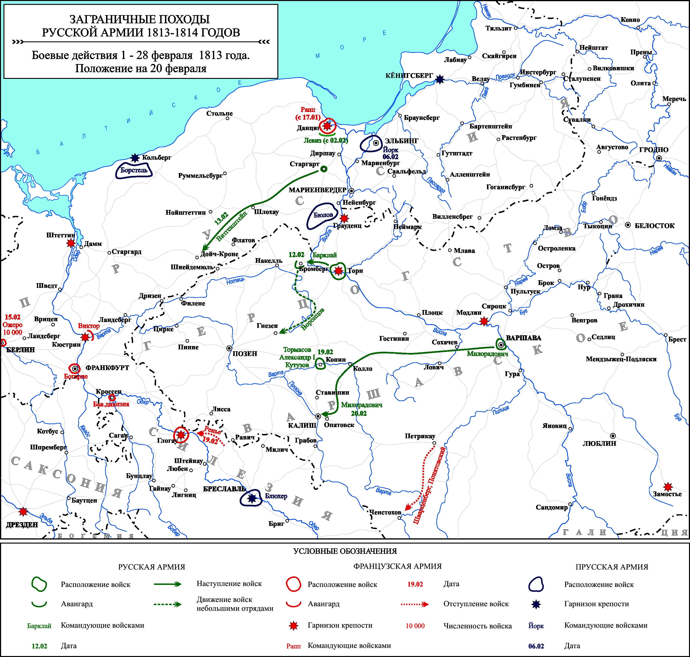 Заграничные походы Русской армии 1813-1814 гг. Положение на 20 февраля 1813 г.