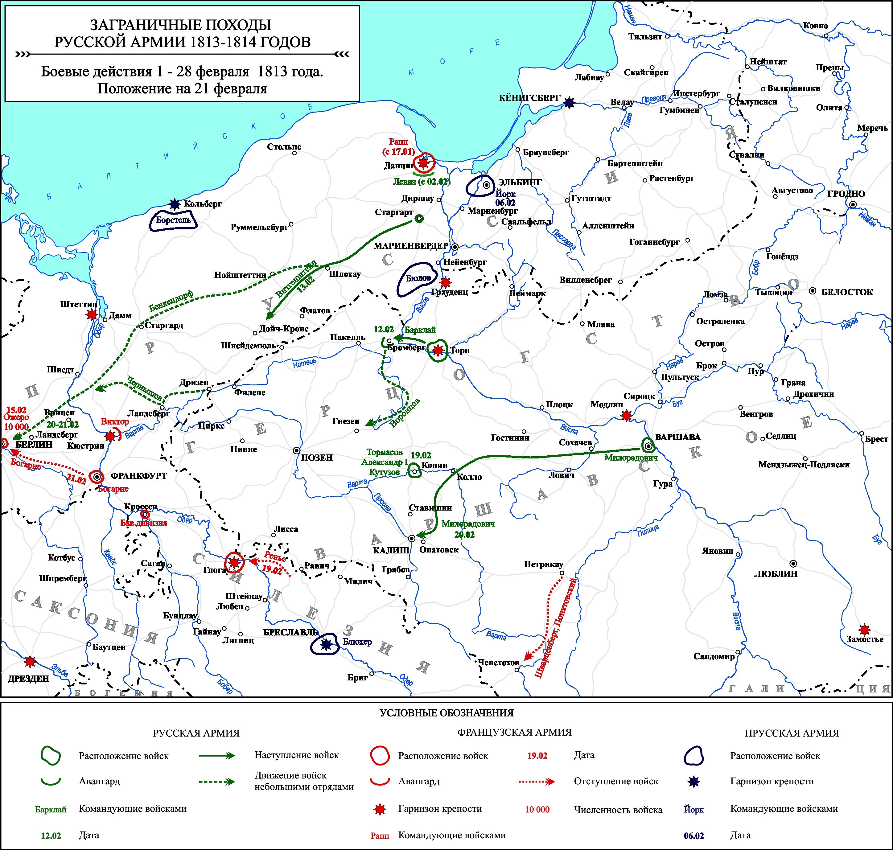 Заграничные походы Русской армии 1813-1814 гг. Положение на 21 февраля 1813 г.
