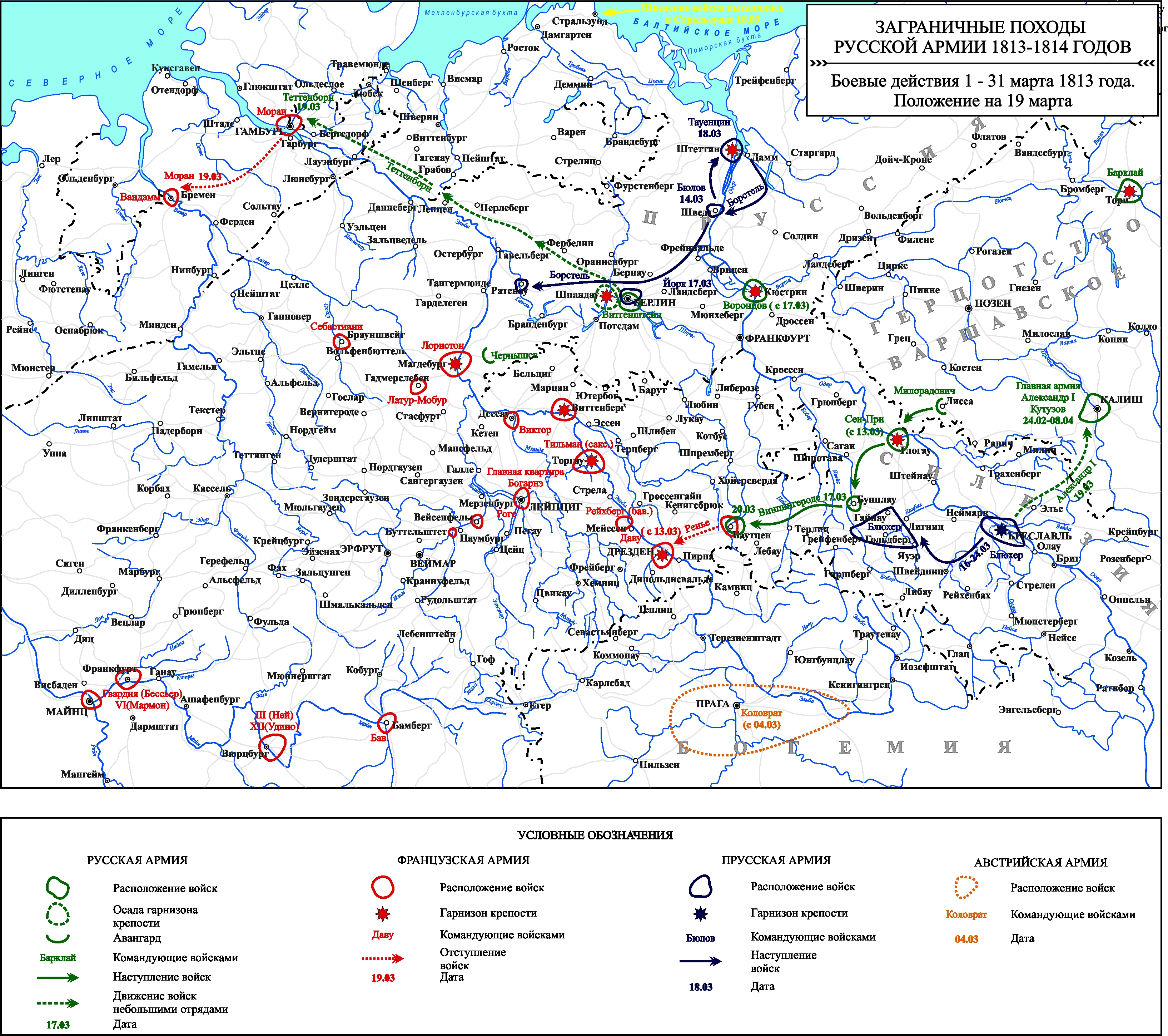 Заграничные походы Русской армии 1813-1814 гг. Положение на 19 марта 1813 г.