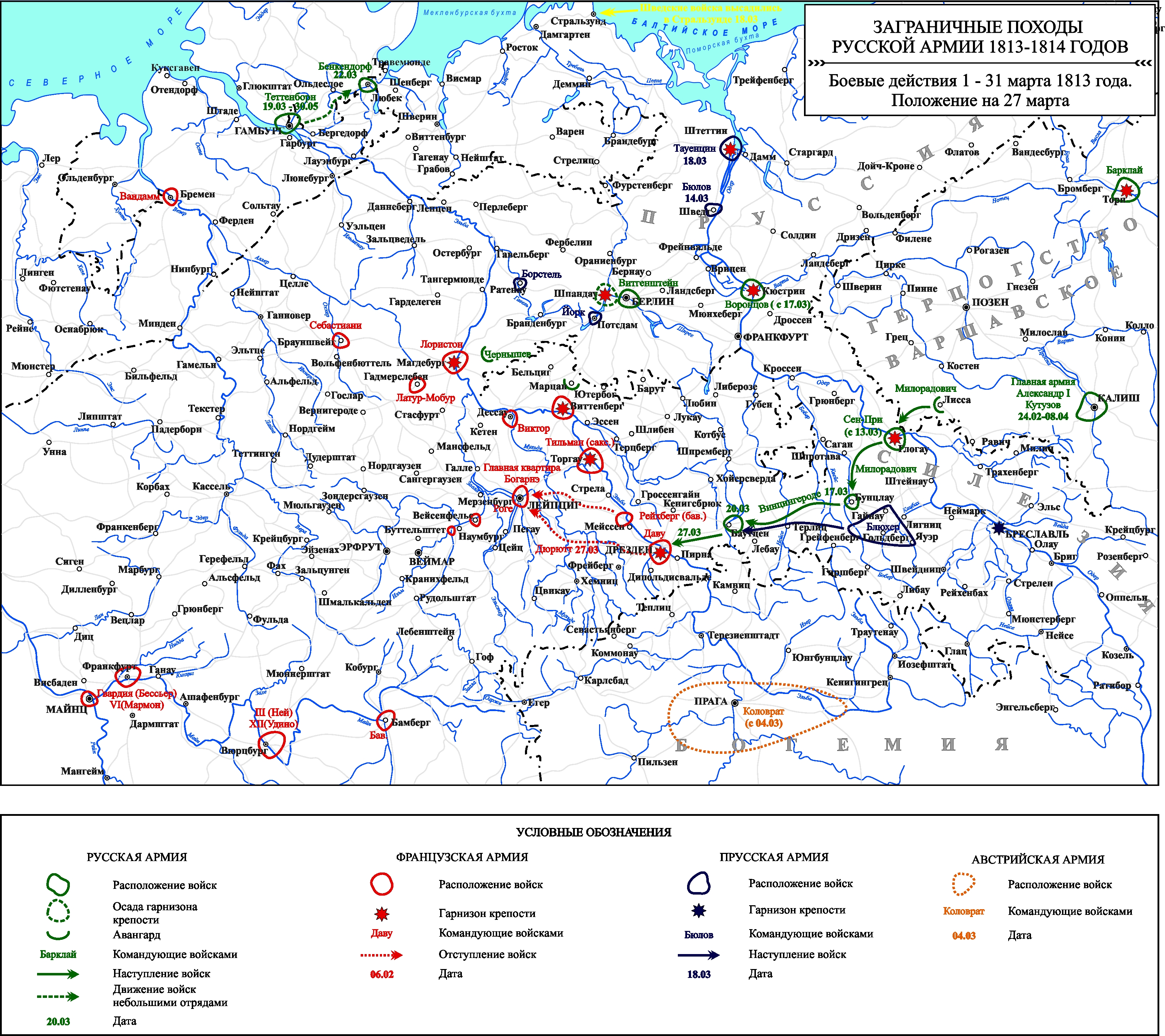 Заграничные походы Русской армии 1813-1814 гг. Положение на 27 марта 1813 г.