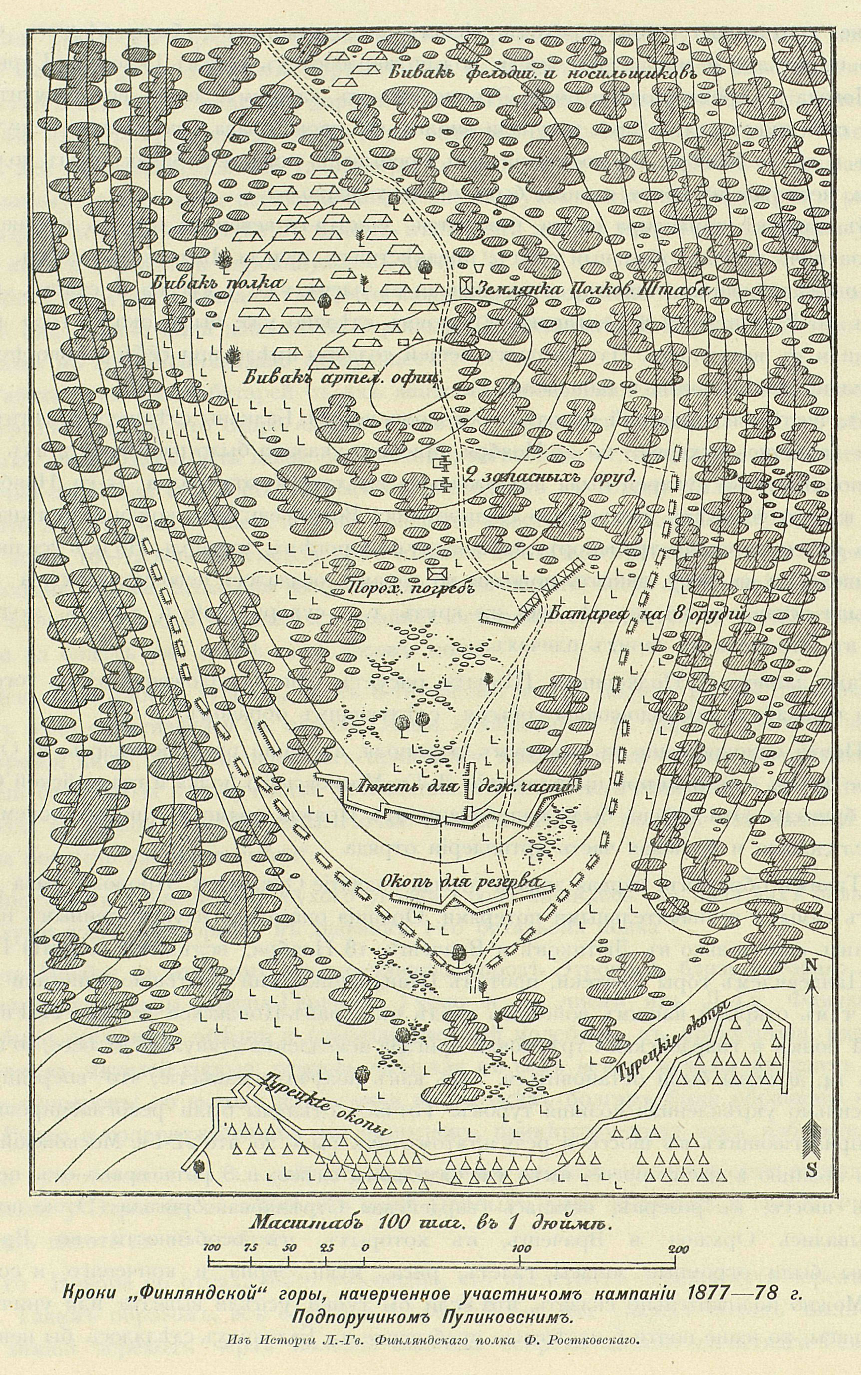 "Финляндская" гора, кампания 1877-1878 годов, начерчено Подпоручиком Пуликовским. Из Истории Лейб-Гвардии Финляндского полка Ф.Ростковского