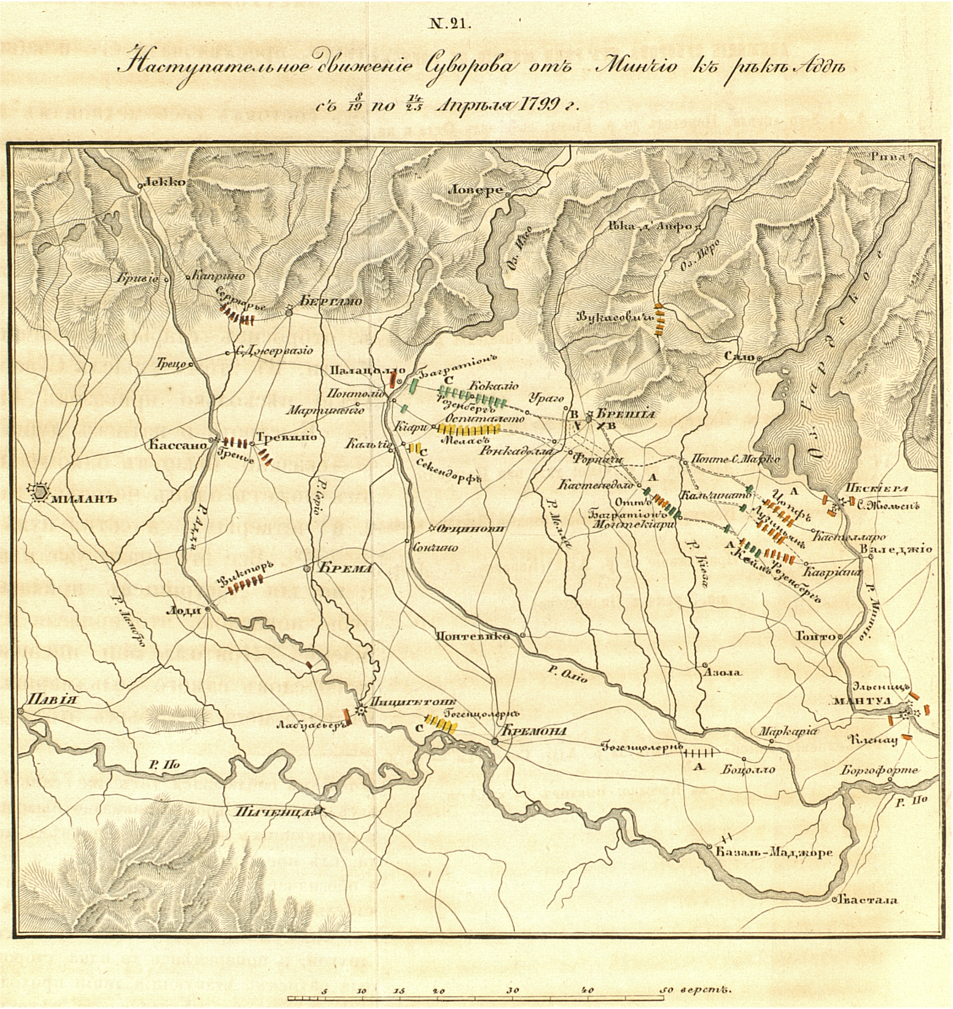 Наступательное движение Суворова от реки Минчио к реке Адд с 8 по 14 апреля 1799 г.