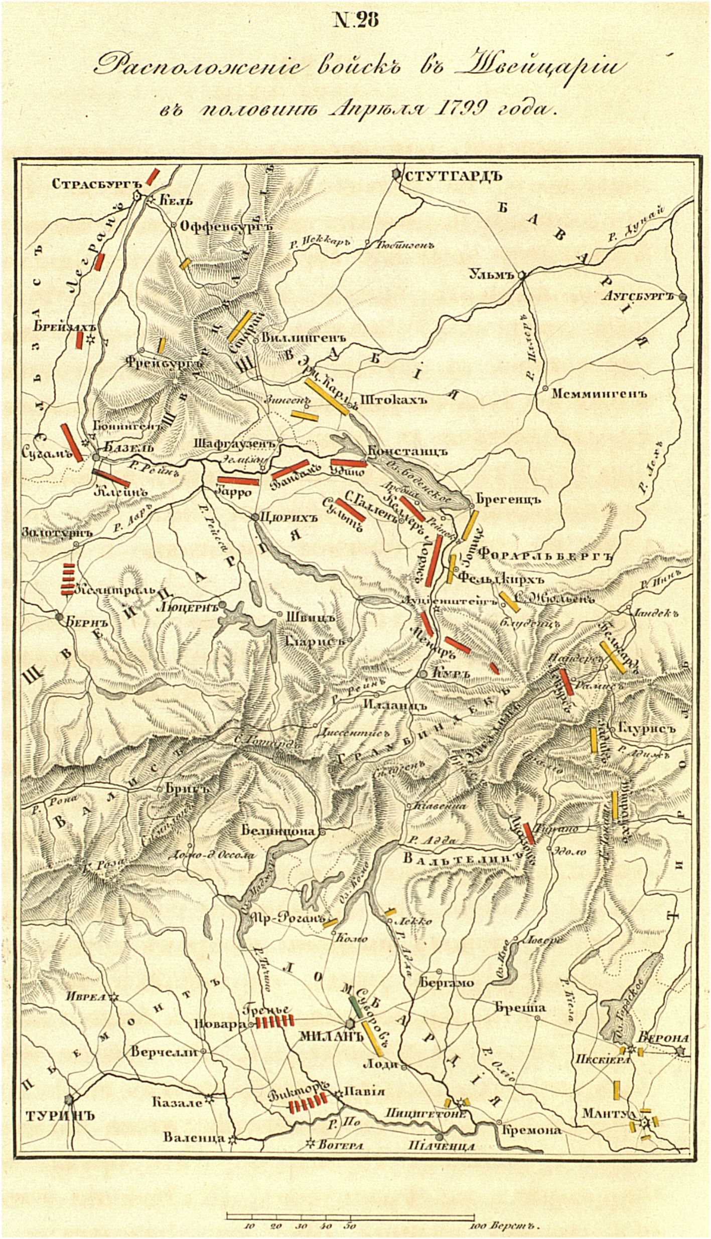 Расположение войск в Швейцарии в половине апреля 1799 г.
