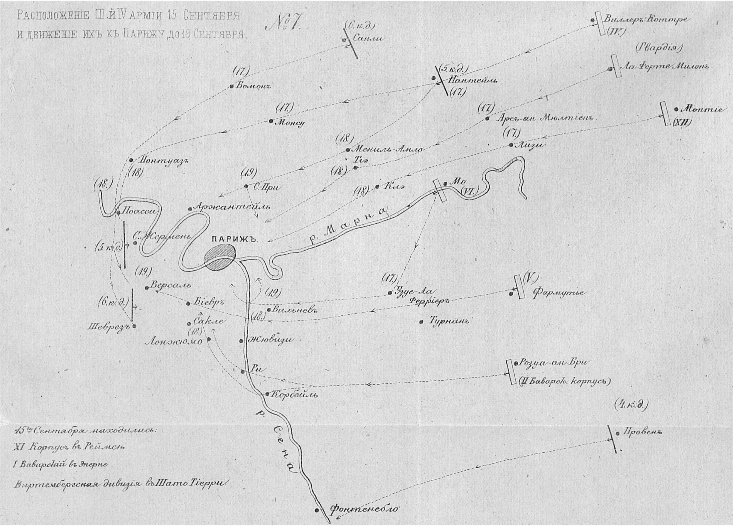Расположение III и IV армии 15 сентября и движение их к Парижу до 19 сентября